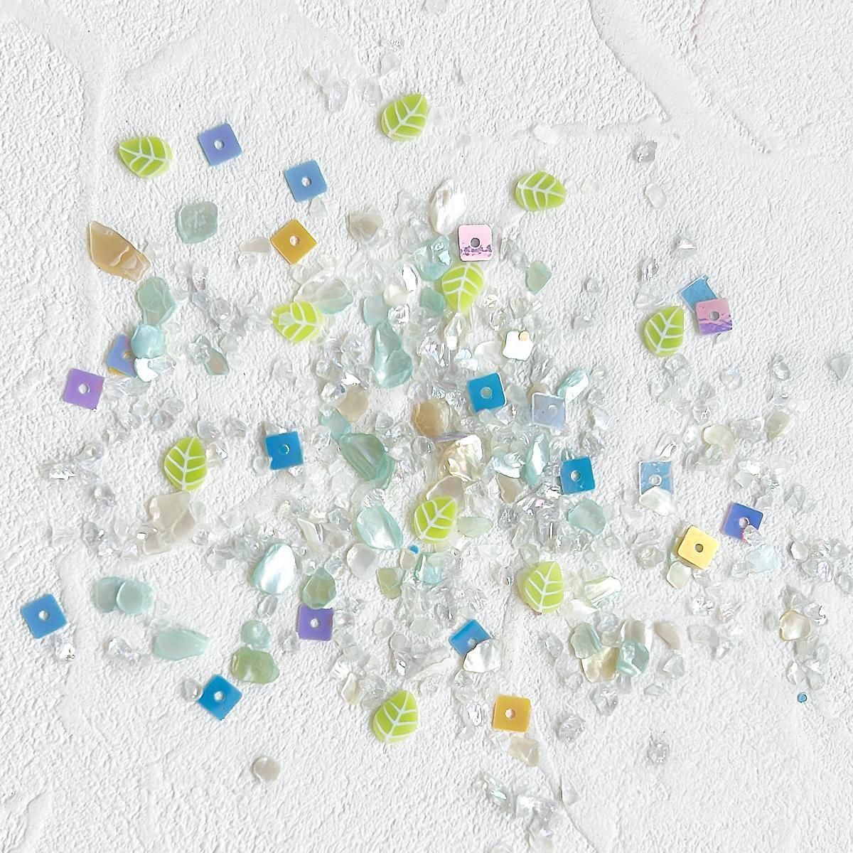レジン封入素材 封入パーツ シェイカー デコパーツ ノルディックタイル 葉っぱ 四角 スパンコール シェルフレーク GreenOceanオリジナルブレンド♪
