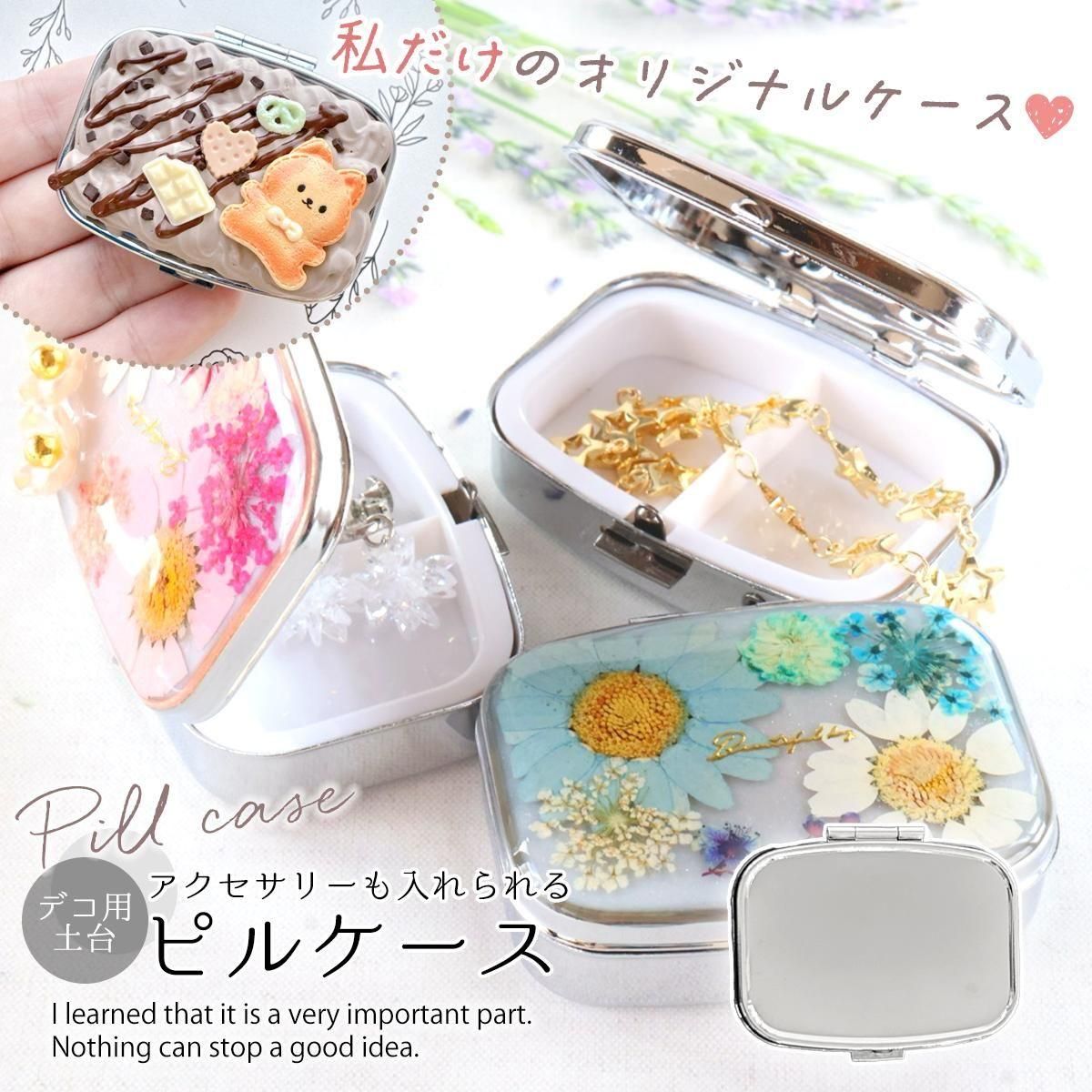 ピルケース シルバー レジン土台 アクセサリーケース 薬入れ 小物入れ デコ用品 デコグッズ デコ ハンドメイド シンプル 推し活 UVレジン 工作 手芸 クラフト