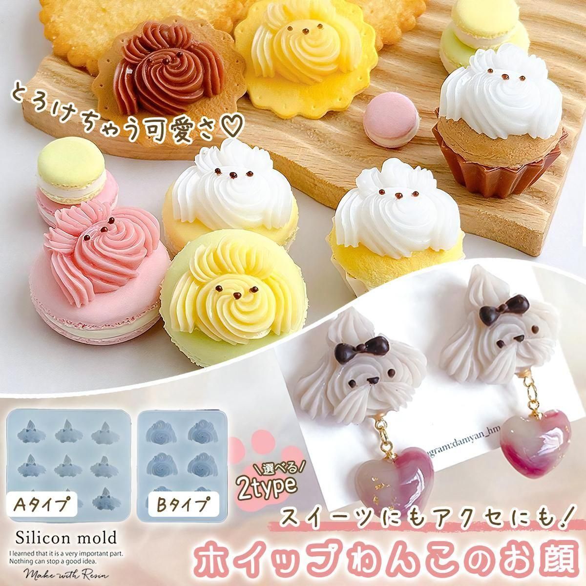 アニマル耳付きミニプリン 大小セットB シリコンモールド レジン型 ゼリー ねこみみ アクセサリー 食品サンプル スイーツ 立体 3d UVレジン 手芸 クラフト
