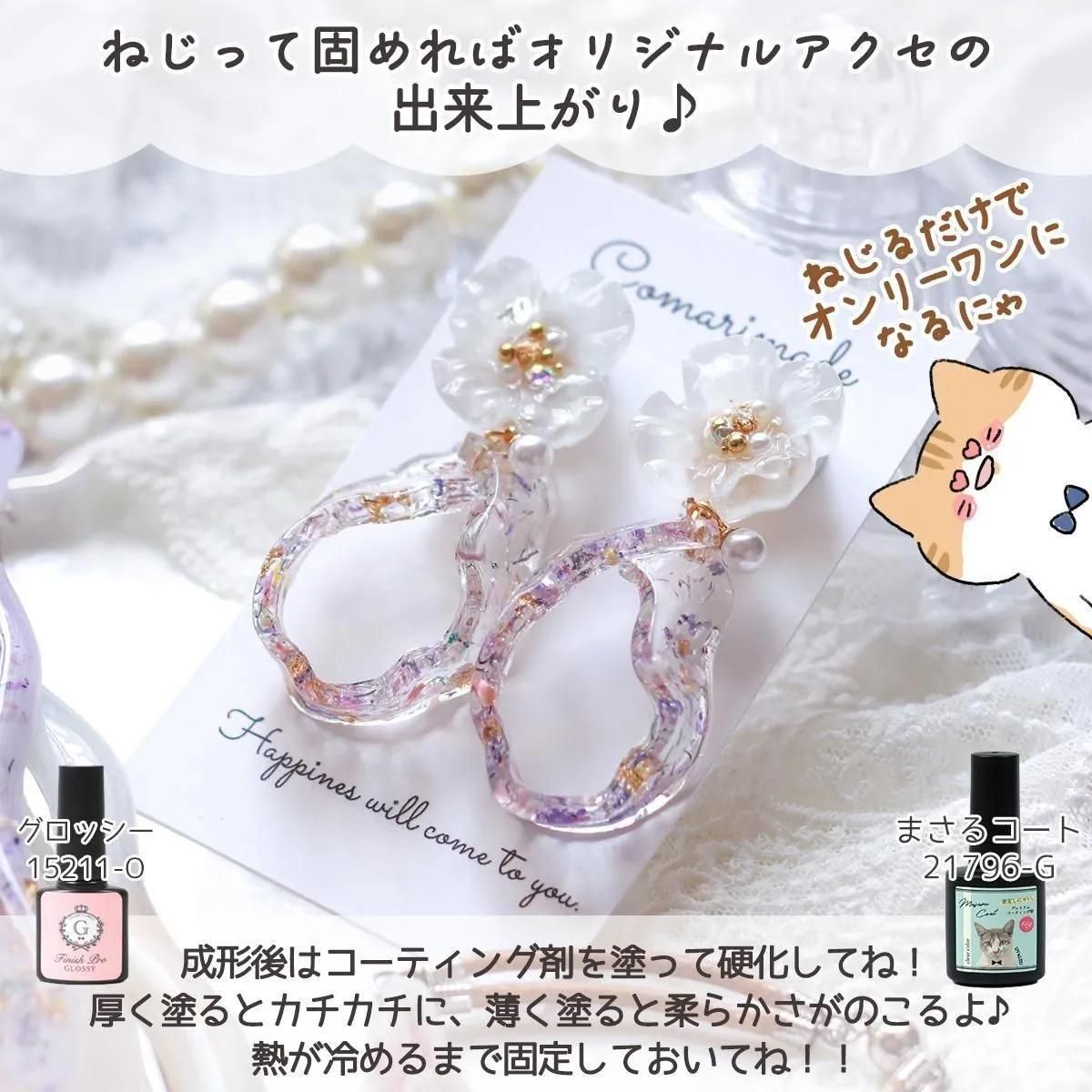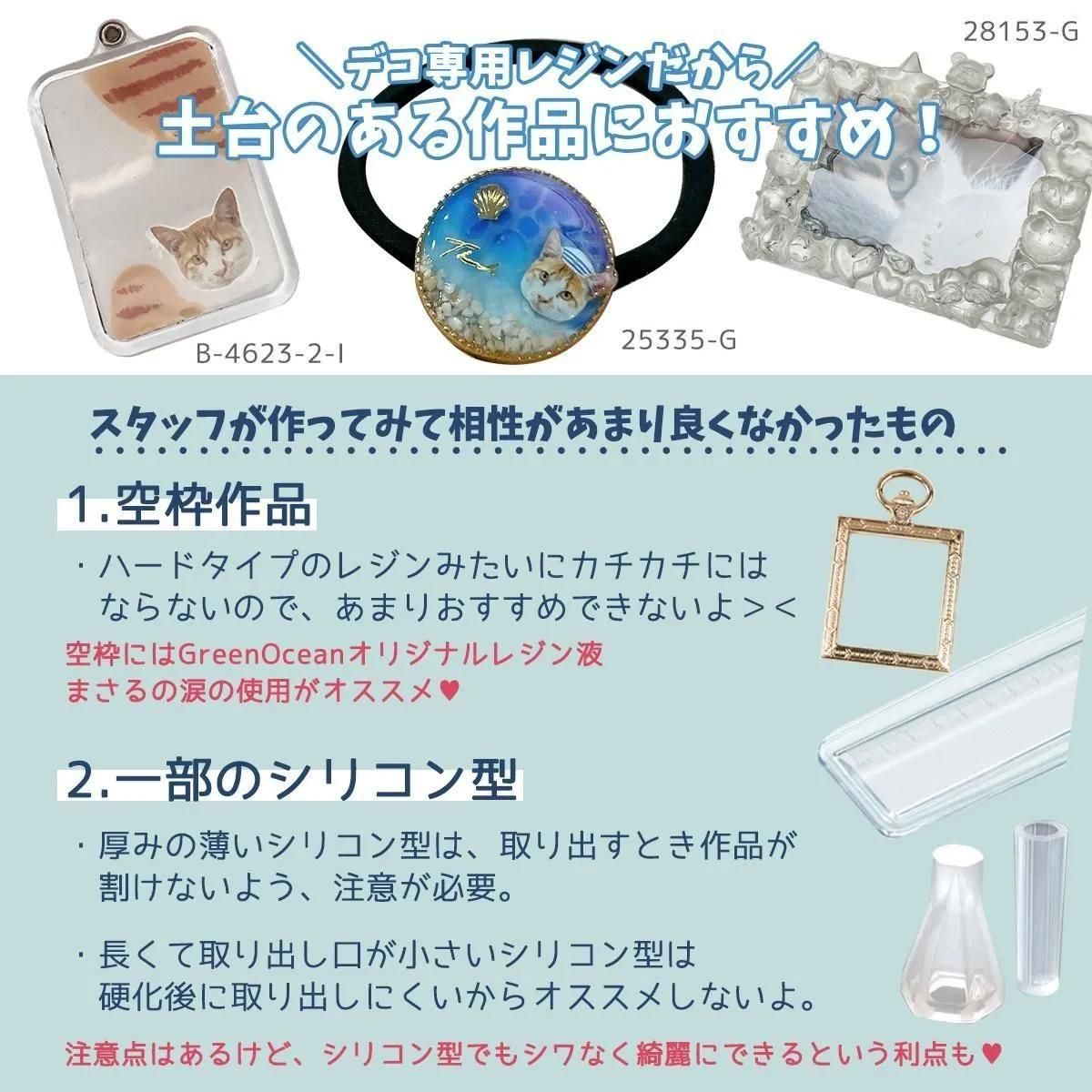 ○着色剤や封入物を入れる場合、着色剤の種類や量によっては硬化のスピードが異なったり完全に硬化しない場合がございます。