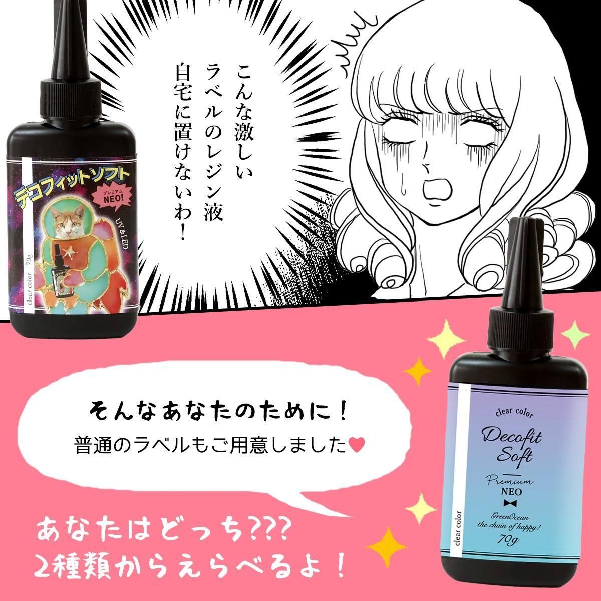 - ◎【大容量UV-LEDレジン液】70g デコ専用 デコフィットソフト プレミアムNEO セミソフトタイプ《クリア》透明 ハンドメイド クリップ制作 手芸 GreenOceanオリジナル《選べる2種》