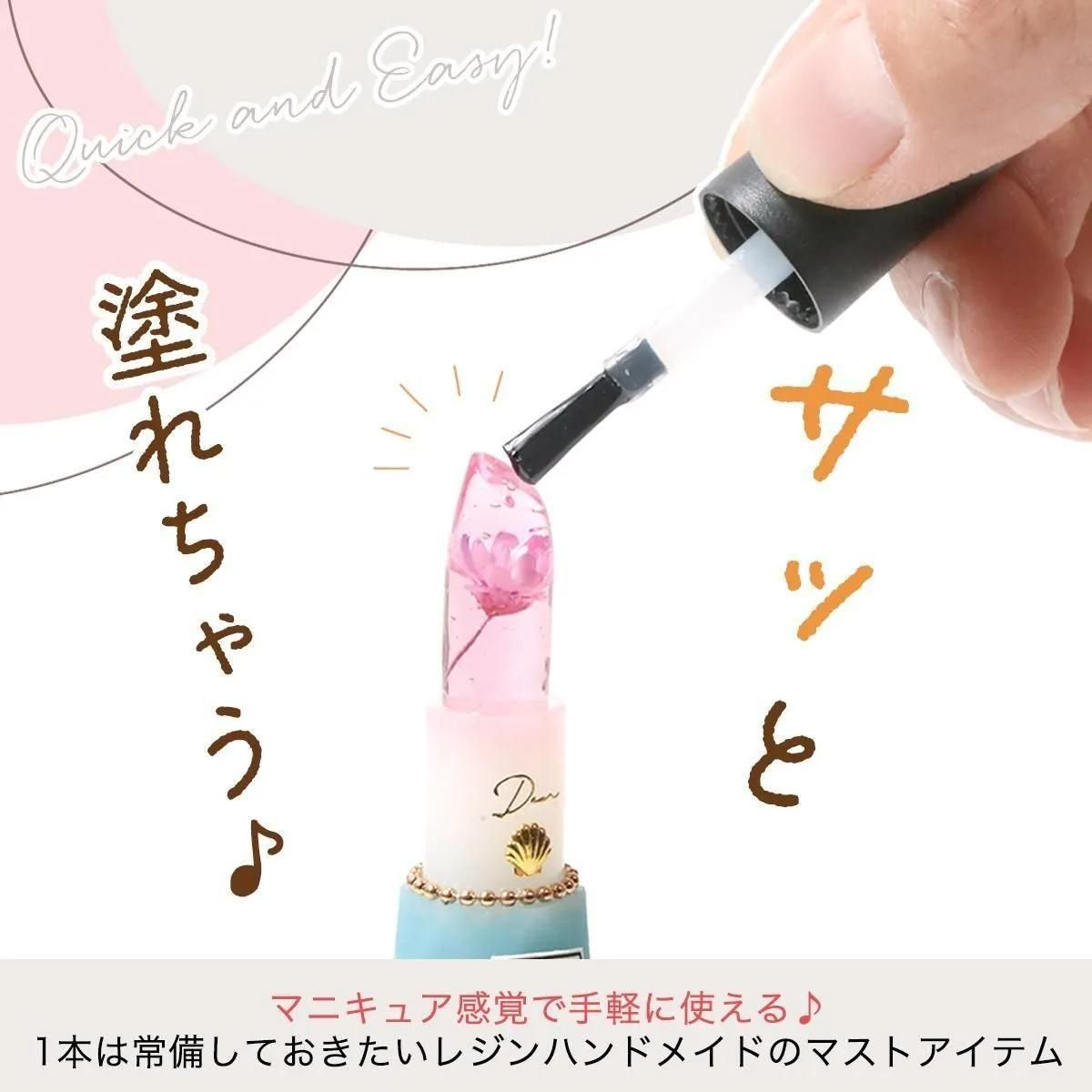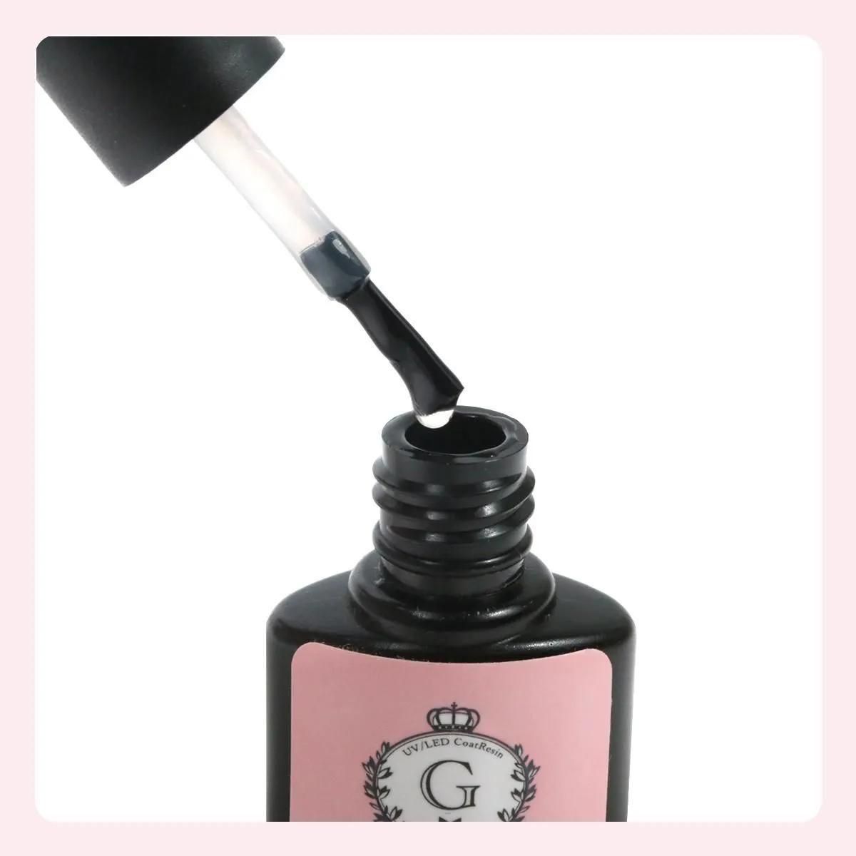 レジン作品などのハンドメイドに使えるコーティング用レジン液。キャップにブラシが内蔵されているため、マニキュアのように手軽に簡単に使えてとても便利♪濡れたような美しい艶が生まれます!!