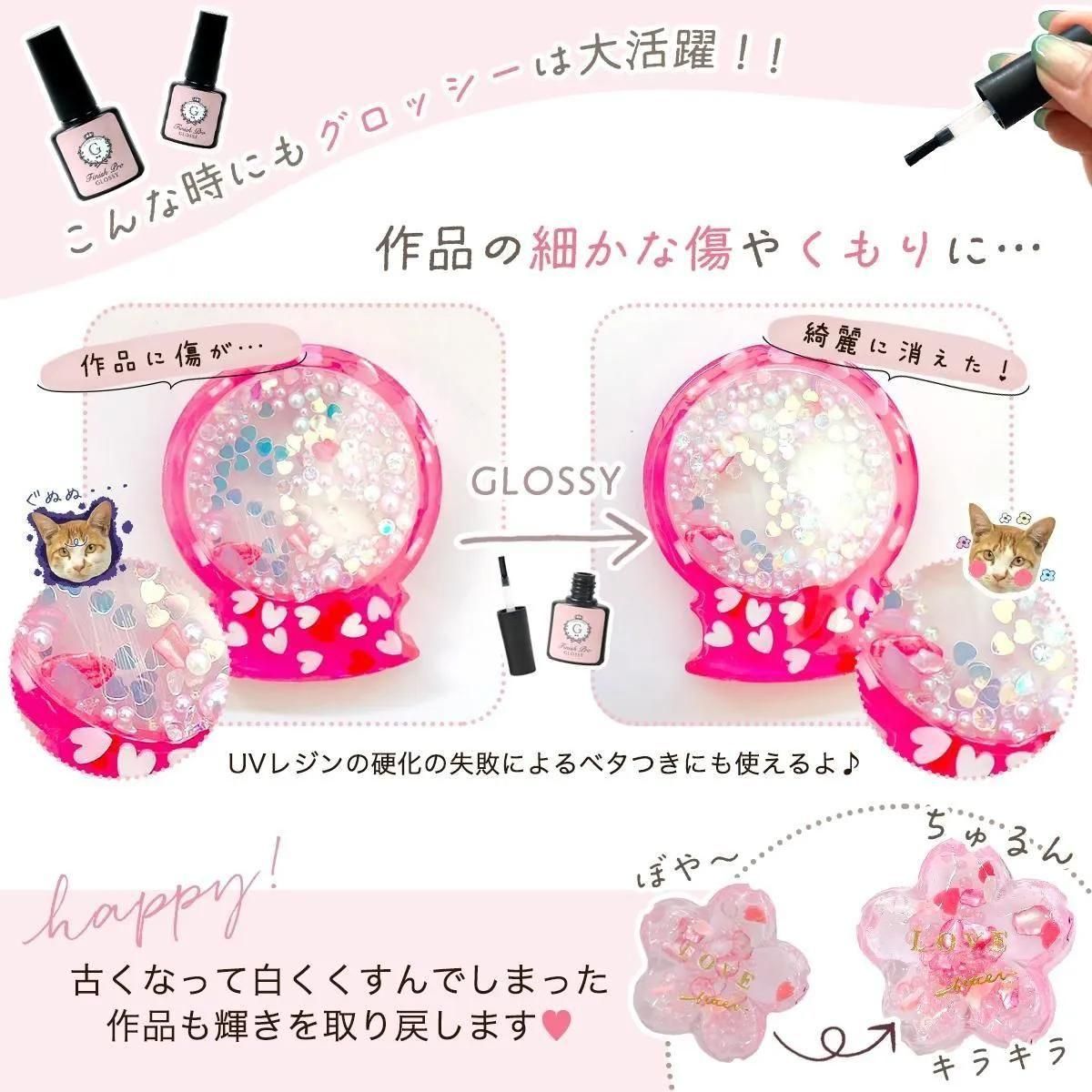 時間が経って表面がくすんできたレジンピアスに塗ってみたらびっくりするくらいツヤが出て触った感じもツルッツルでめちゃくちゃよかったです!