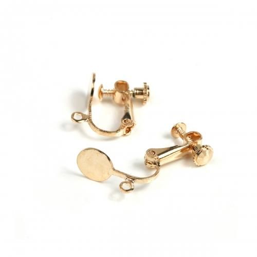 - ◎【ピアス・イヤリング】1ペア 貼付台付きイヤリング金具 ネジ式 カンあり・なし《きれいめゴールド》 [ばね式,バネ式,イヤリング金具,アクセサリーパーツ,基礎金具,pair]