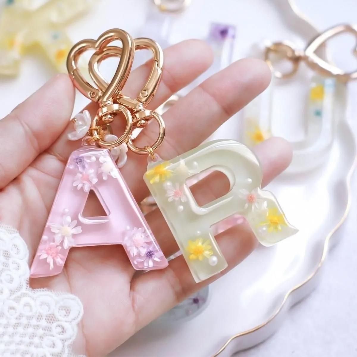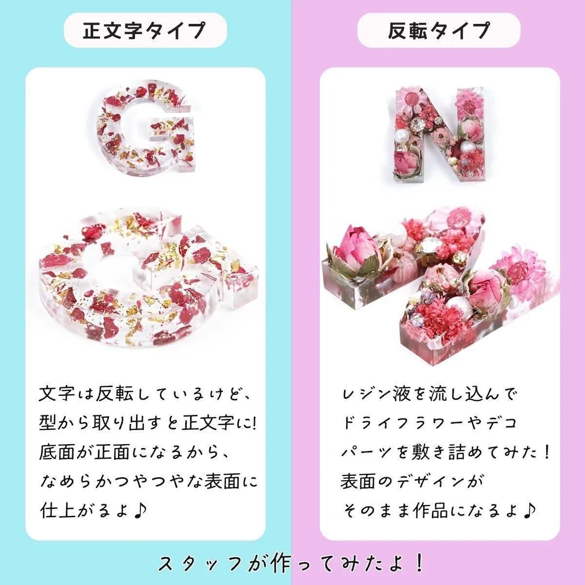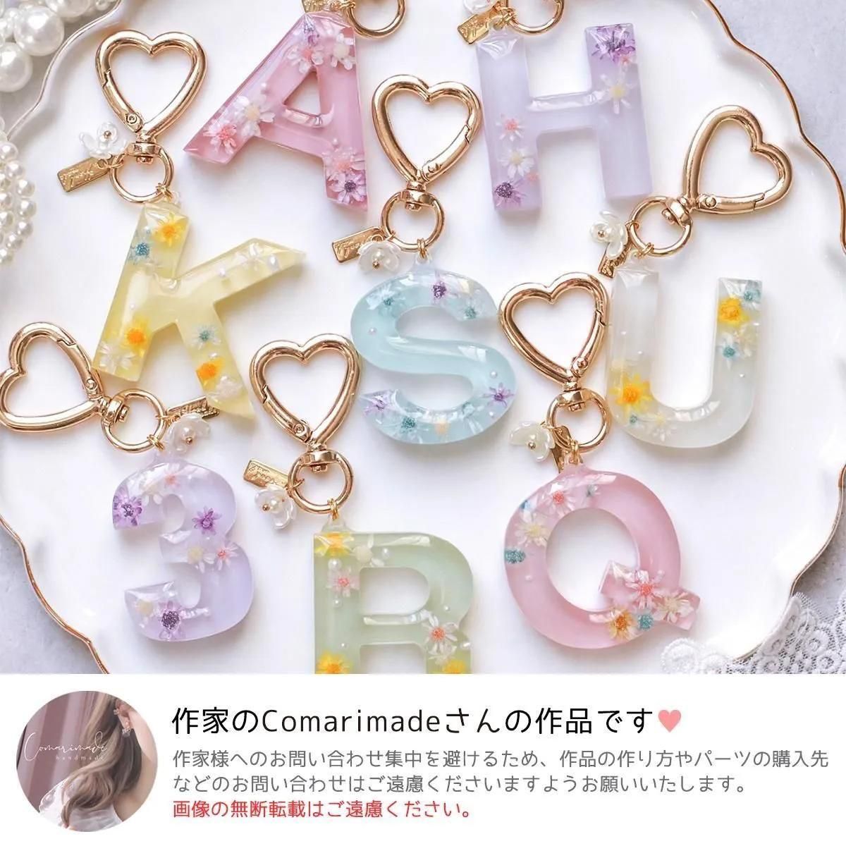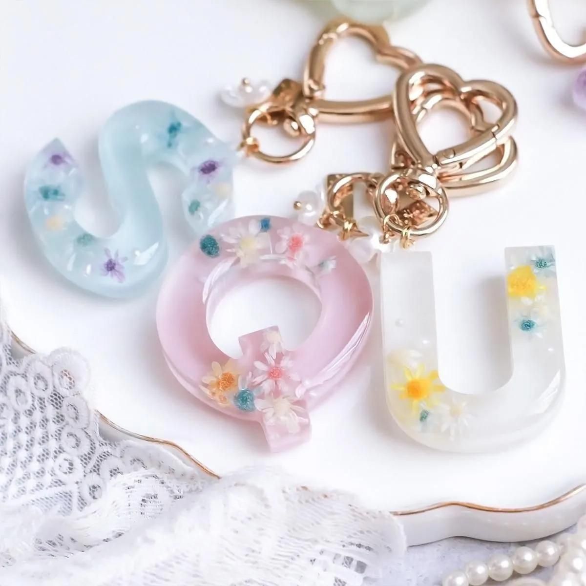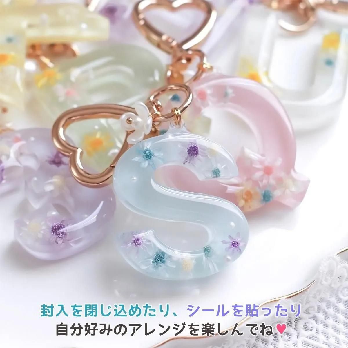 イニシャルキーホルダー作ってみたかったので嬉しいです!封入物入れて固めた後、型から取り出して前から見るまでウキウキしながら作っています。
