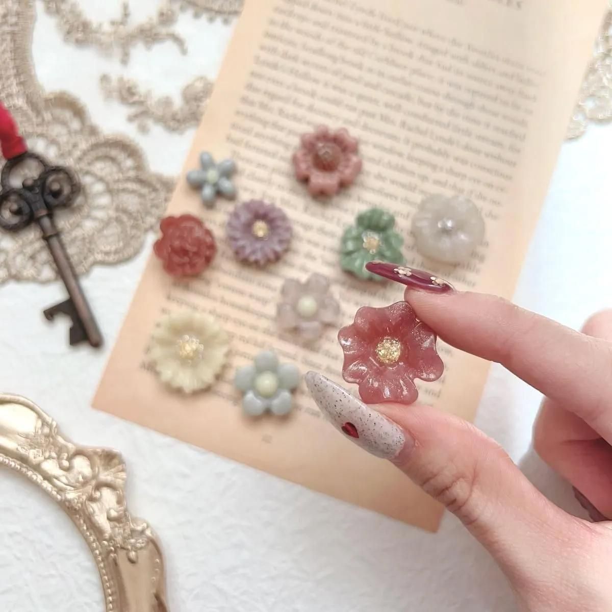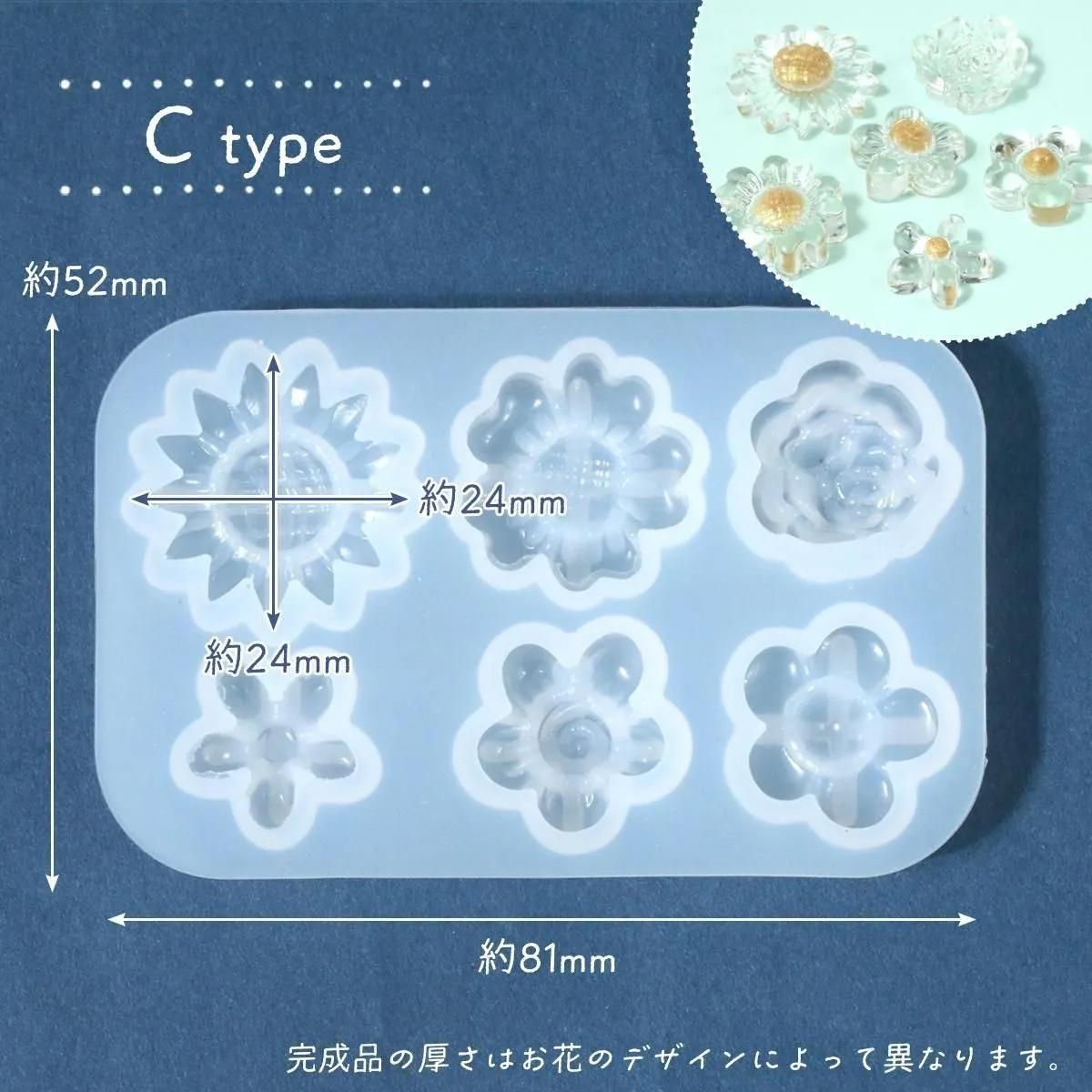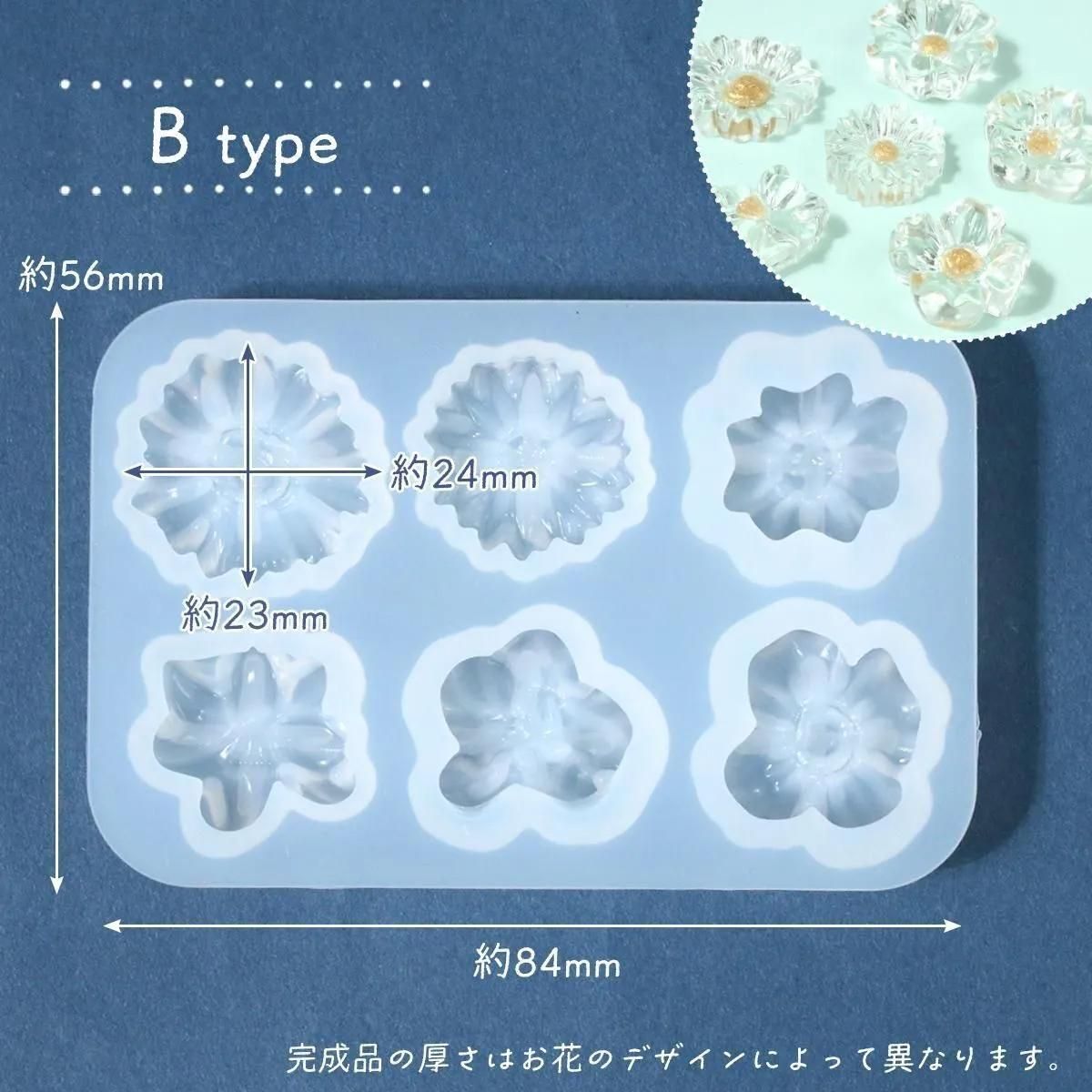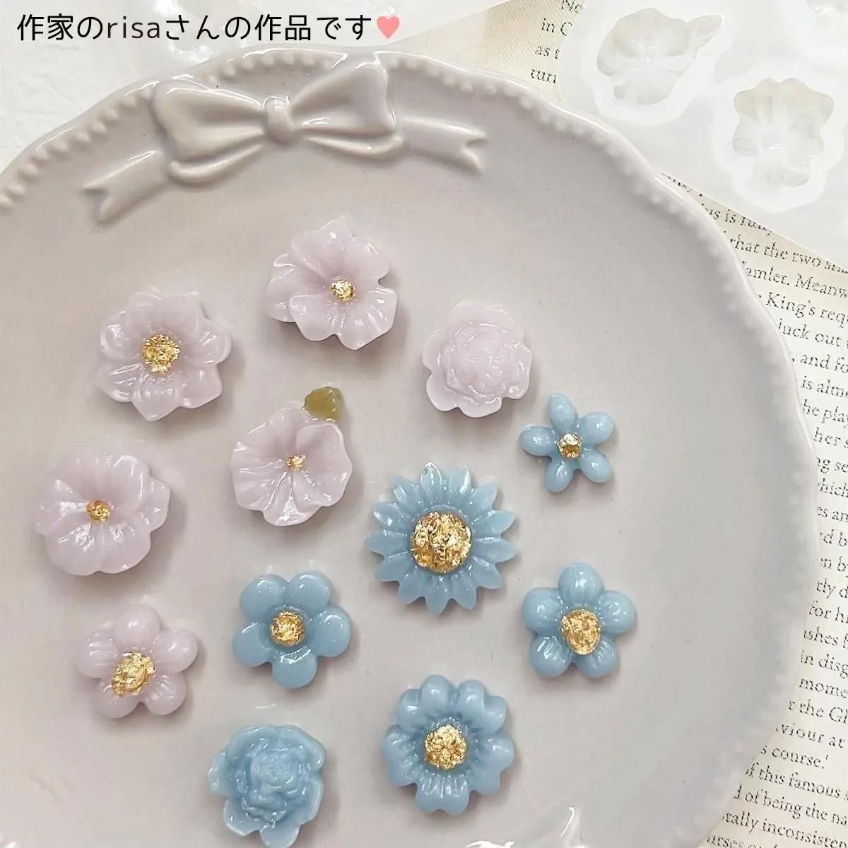 大人可愛いフラワーカボションパーツが6種作れるシリコンモールド。3種類から選べるよ♪