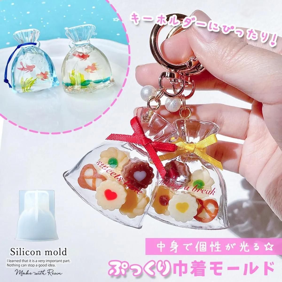 ◎【シリコン型・モールド】巾着袋 シリコンモールド レジン型 ミニバッグ きんちゃく 巾着ポーチ 和風 お菓子 ミニチュア 縁日 金魚 キーホルダー 立体 3d UVレジン LED 手芸 クラフト
