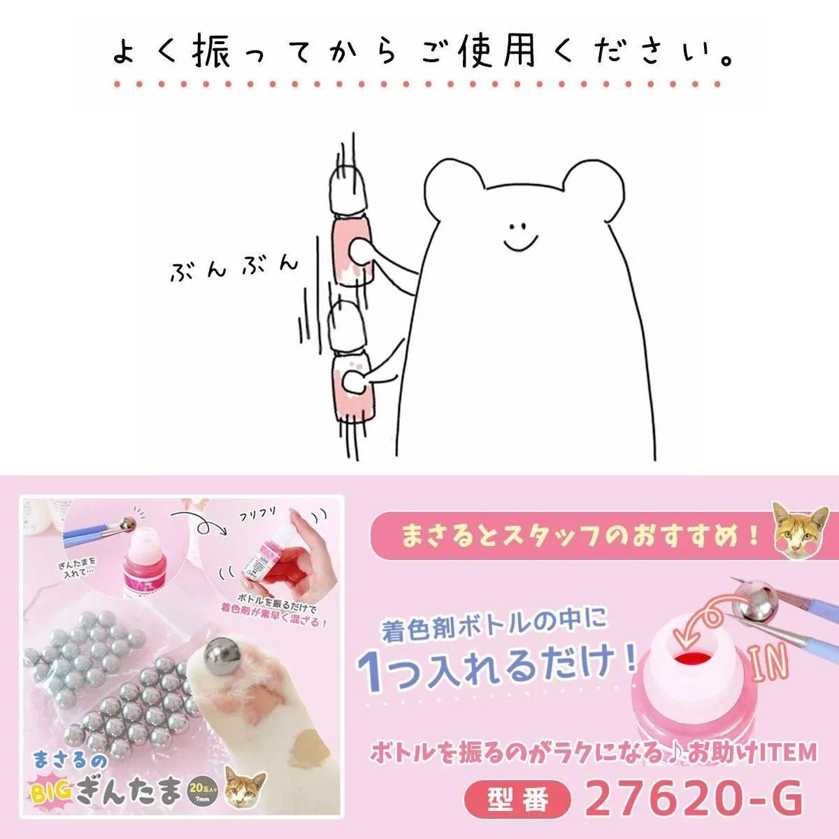 ○使用するレジン液やライトの種類によって、うまく混ざらない、硬化中の退色、硬化不良など起こる可能性があります(現在世の中に普及しているレジン液やライト、着色剤の種類がとても多いため、全てのパターンをテストすることが難しいです。テストはまさるの涙を使用しています)