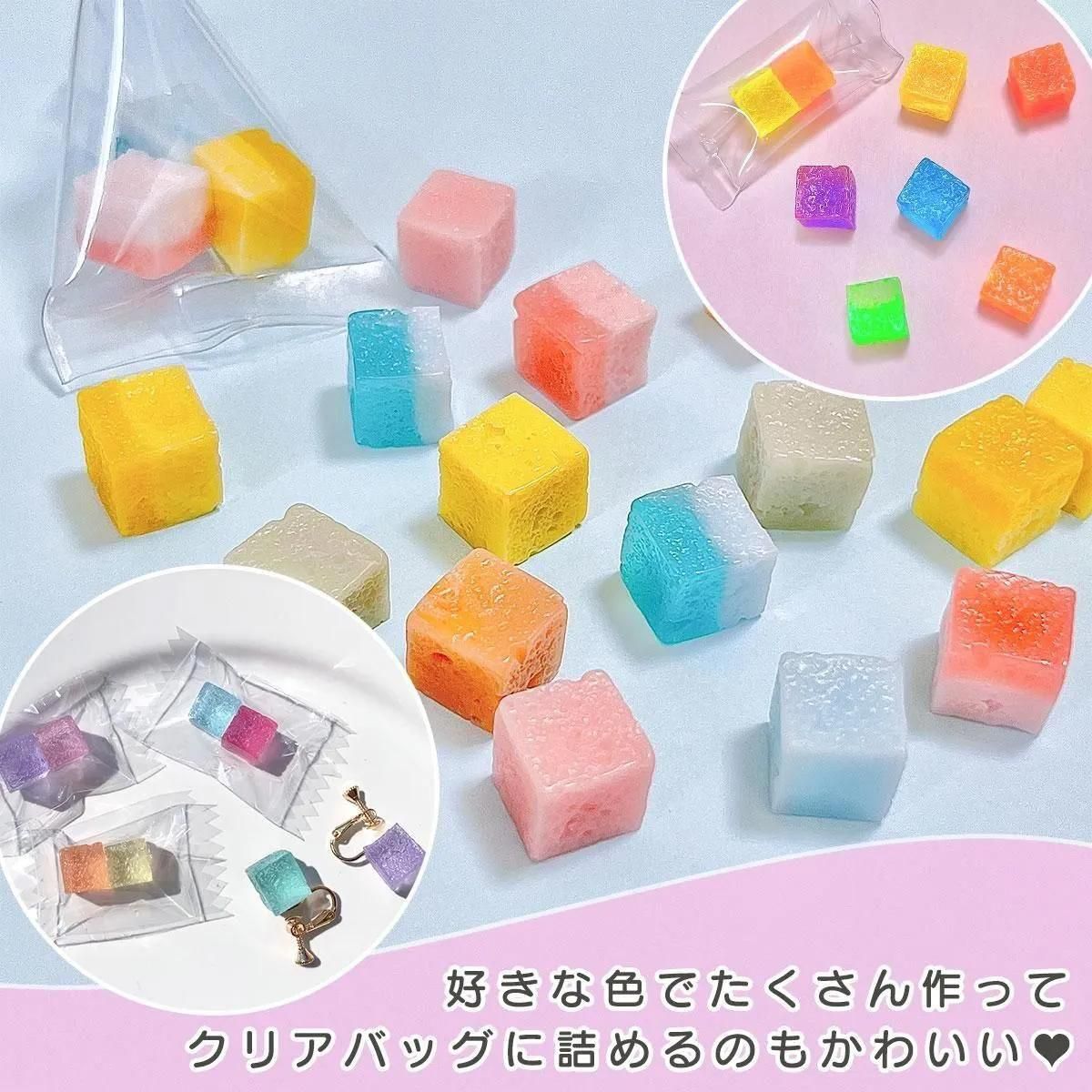 でもイメージそのままのあの飴のような可愛いキューブがたくさん作れて、使い道もたくさんあるので買って良かったです!どんな色でも可愛いので余ったレジンを毎回流しています
