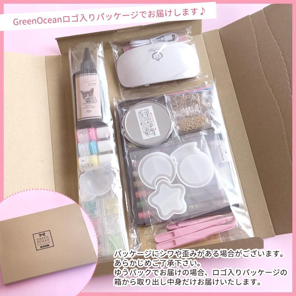 スターターキットですし価格も安かったので少し遊べたらいいな〜くらいに思っていたのですが、たくさんのラメや可愛いモールドが入っていて何を入れるか悩んだり出来てとても楽しめました。梱包も丁寧ですごく満足です。