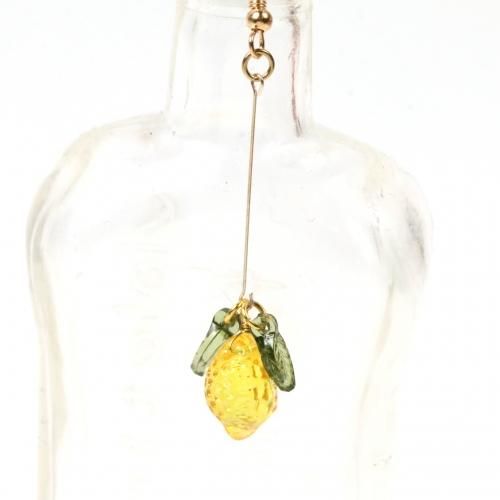 ◎【ガラスパーツ】ビーズ アクセサリーパーツ ガラス製 レモン 檸檬 フルーツ 果物 くだもの pair 2個 レモン《クリア×イエロー×ゴールド》