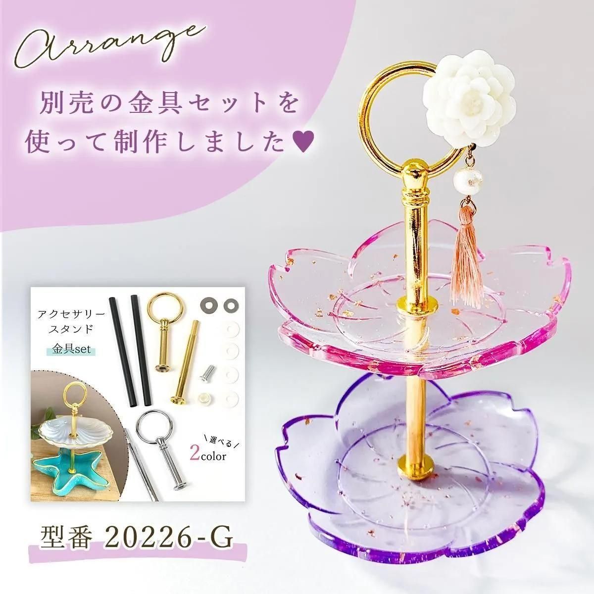 ◎【雑貨パーツ】スタンド金具セットミニ 2段スタンド用 アクセサリースタンド アクセサリー収納 ディスプレイ 2段トレー ケーキスタンド 2段ディッシュ 皿 レジン ゴールド シルバー《選べる2色》