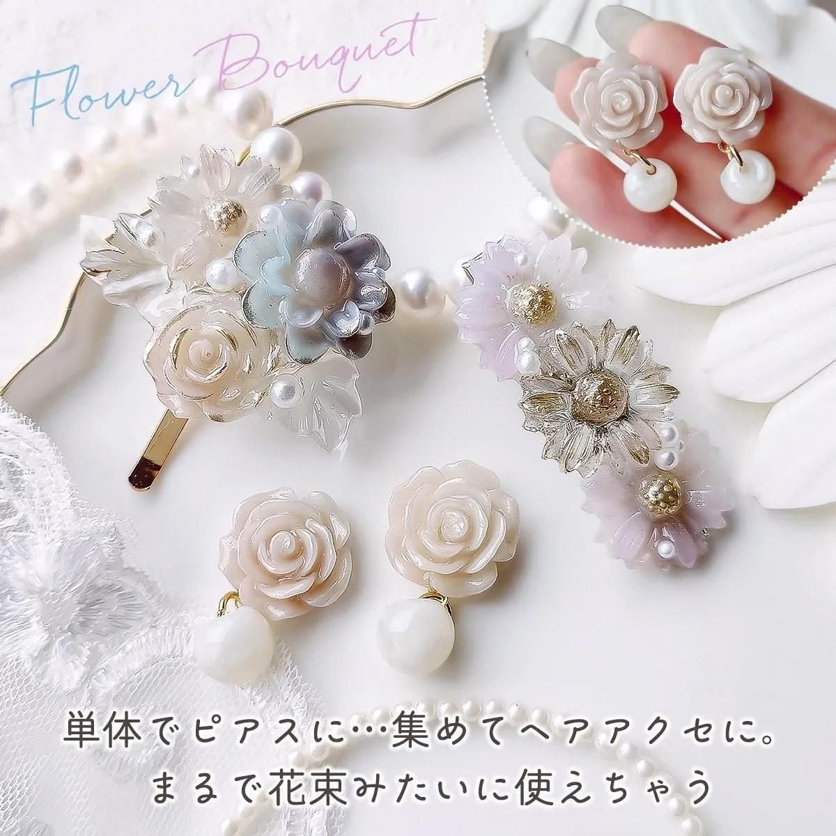 単体でピアスに、並べてヘアアクセに。ニュアンスが異なるパーツを集めて、まるでブーケのようにアレンジしても可愛いよ^^
