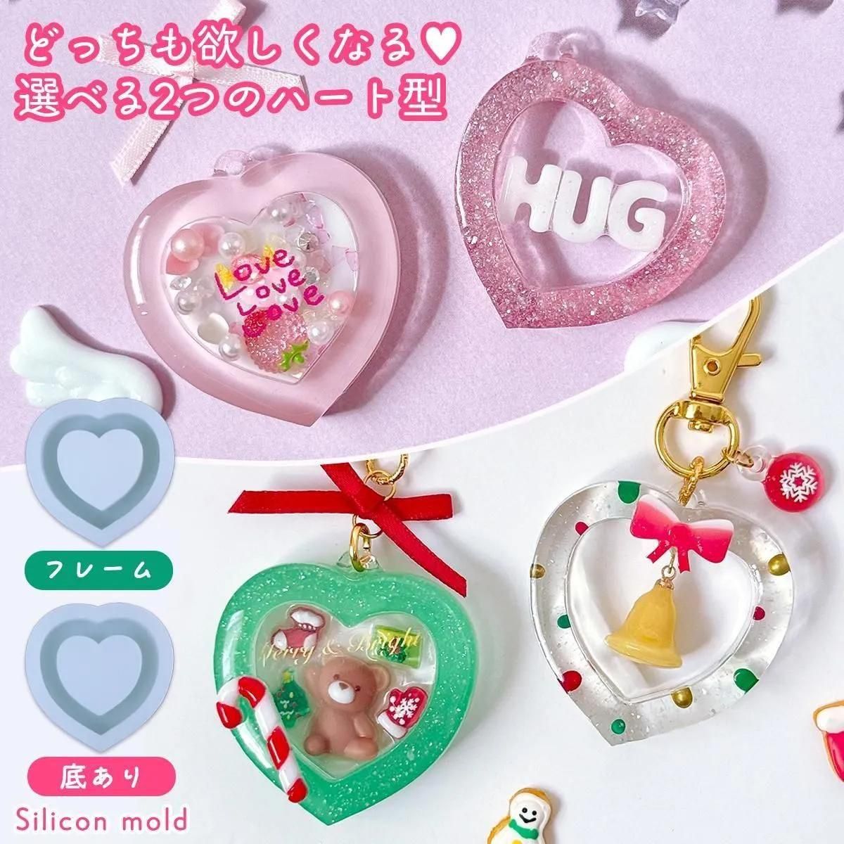 ◎【シリコン型・モールド】ハートのカシャカシャ シリコンモールド フレーム シェイカー シャカシャカ レジン型 キーホルダー チャーム 推し活 UVレジン LED 手芸 クラフト《選べる2種》