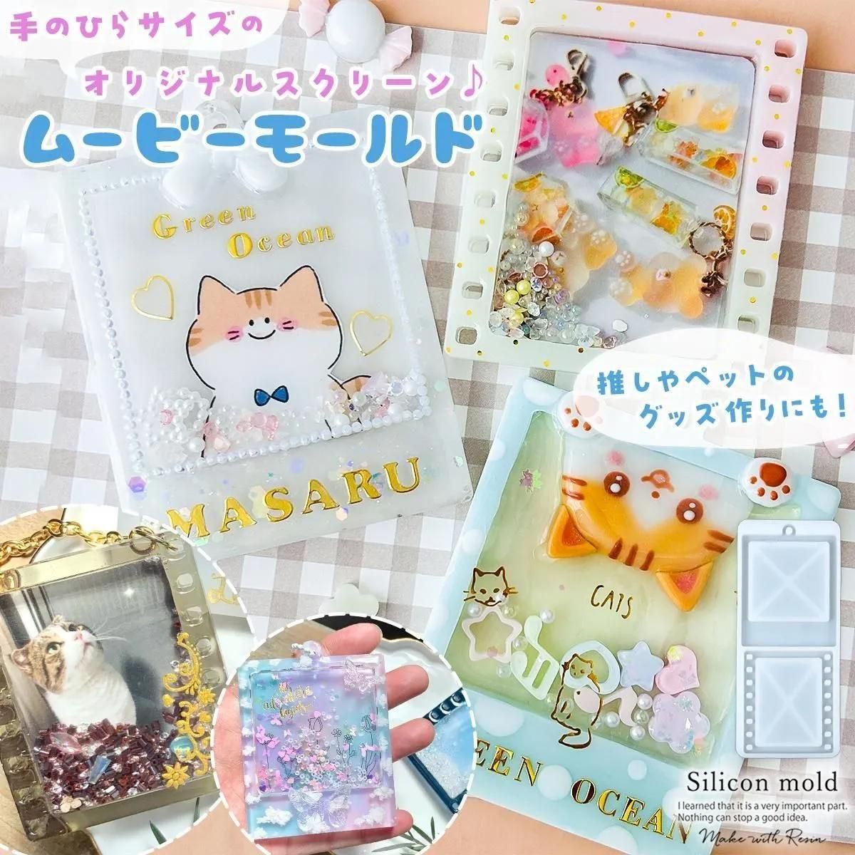 映画のフィルムみたいなカシャカシャが2タイプ作れるシリコンモールド。推しやペットの写真を入れればオリジナルグッズの完成!キーホルダーにすれば、いつでも一緒におでかけできちゃうよ♪
