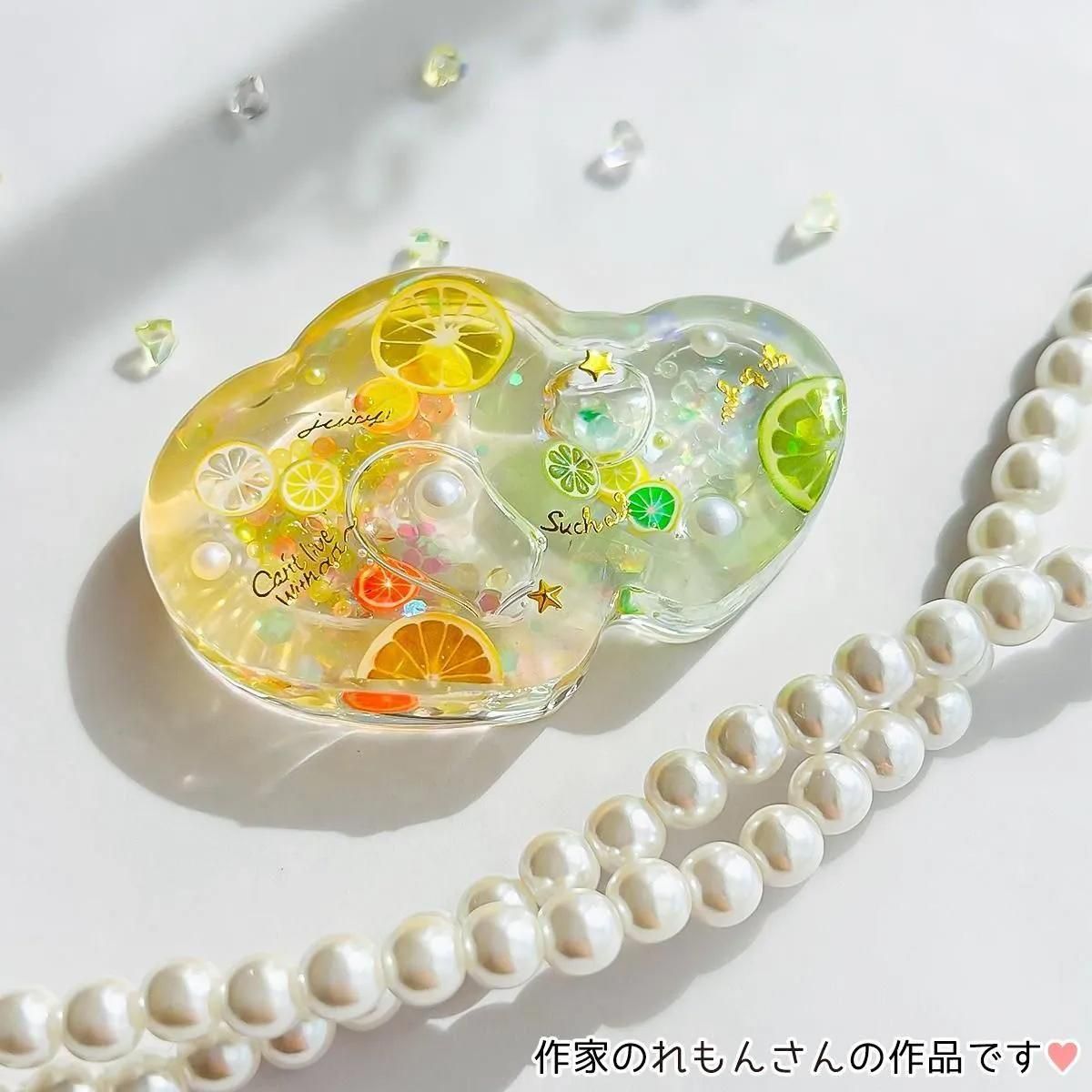 中にパーツを入れてカシャカシャさせたり、マホウノオイルや、ハーバリウムオイル、水などをいれたら、動くたびにキラキラ揺れて、特別感のある作品が完成するよ。