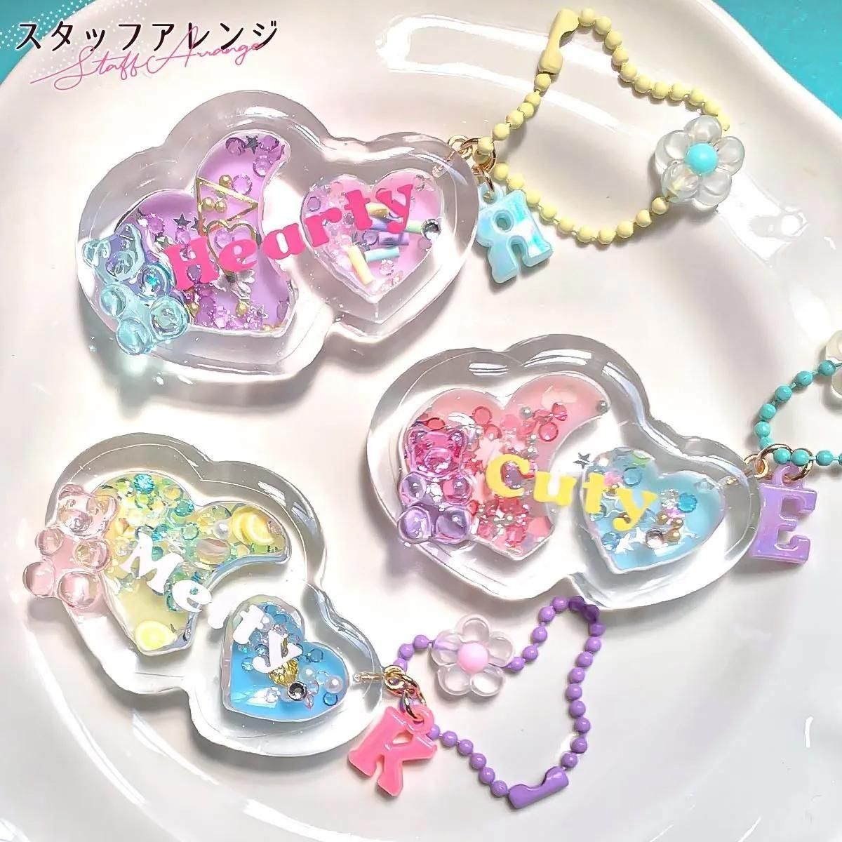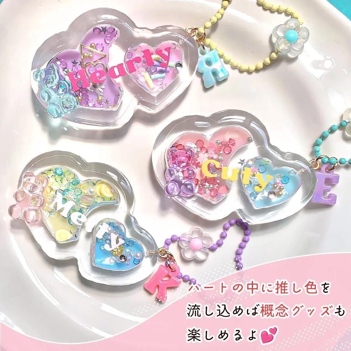 2つのハートがくっついたロマンティックでかわいいカシャカシャが作れるシリコンモールド。キーホルダーやバッグチャームなど、大人っぽさとかわいらしさを両立できるデザインだから、プレゼントや推し活グッズにもおすすめだよ♪