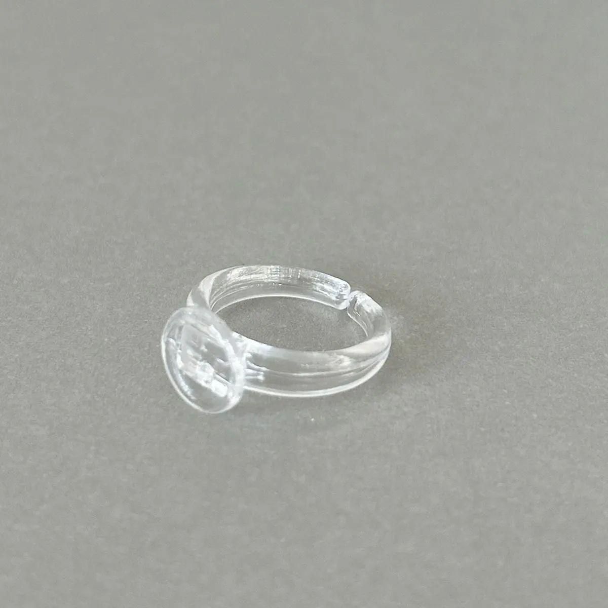 - ◎【プラパーツ】100個 着色剤カラーチャート用リング 爆盛 指輪 ゆびわ アクリル クリア カラリー 色見本 土台 レジン デコパーツ カラー見本 キッズ 小さい アクセサリーパーツ