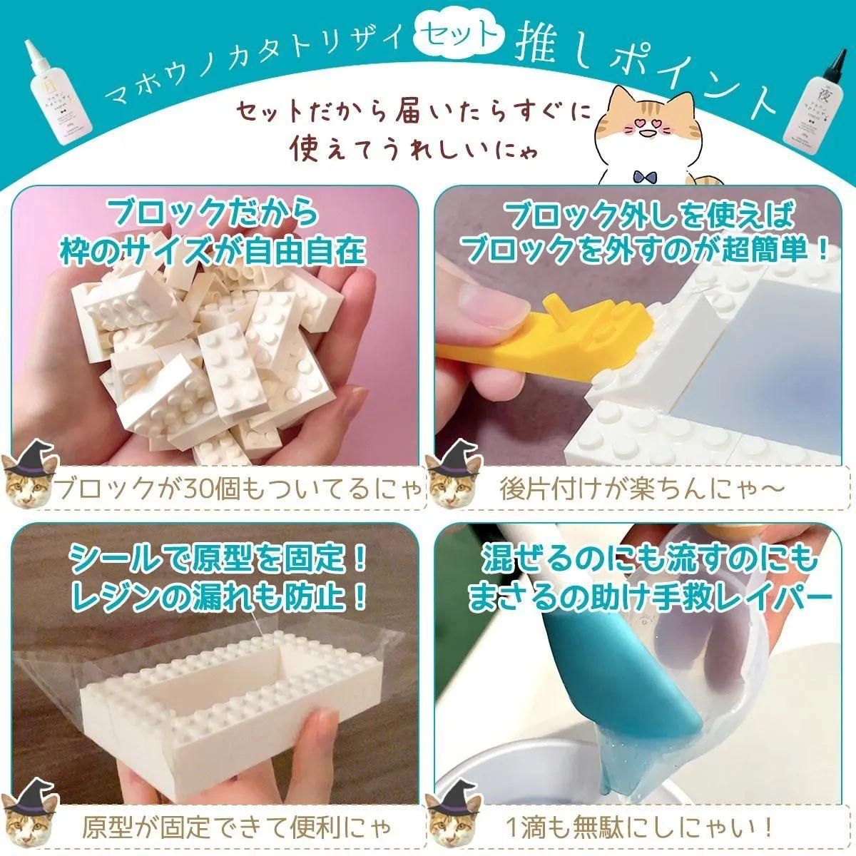 - ◎【型取り剤】シリコンモールドが作れる マホウノカタトリザイ リキッド スターター6点セット 200g シリコン型 レジン型 レジン液 DIY 手芸 パーツ ヘラ ブロック フィルム