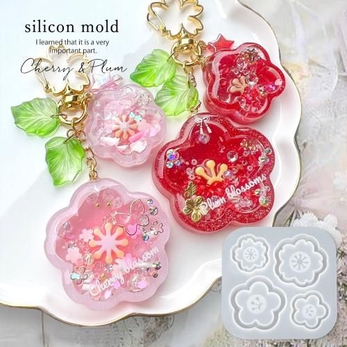 - ◎【シリコン型・モールド】桜&梅のカシャカシャ シリコンモールド 2サイズ シェイカーモールド レジン型 UV LED レジン セット 花 和風 さくら 春 手芸 クラフト シャカシャカ 中身が動く