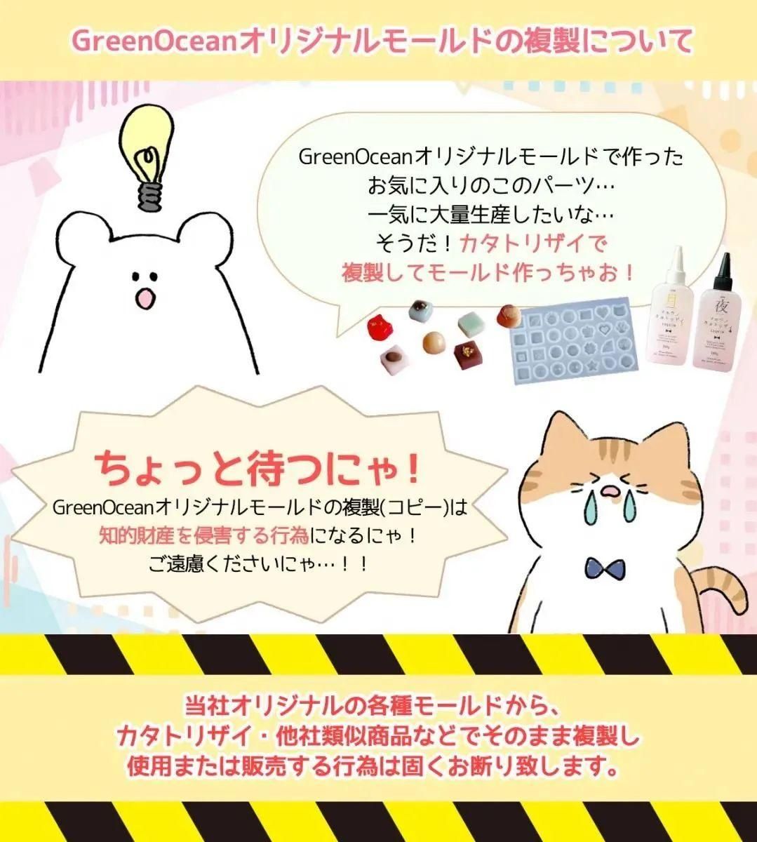 ○当店で購入したGreenOceanオリジナルモールドをフリマサイト等で出品する際は複製についての注意点を販売者の責任において購入者に必ずお伝え下さい。
