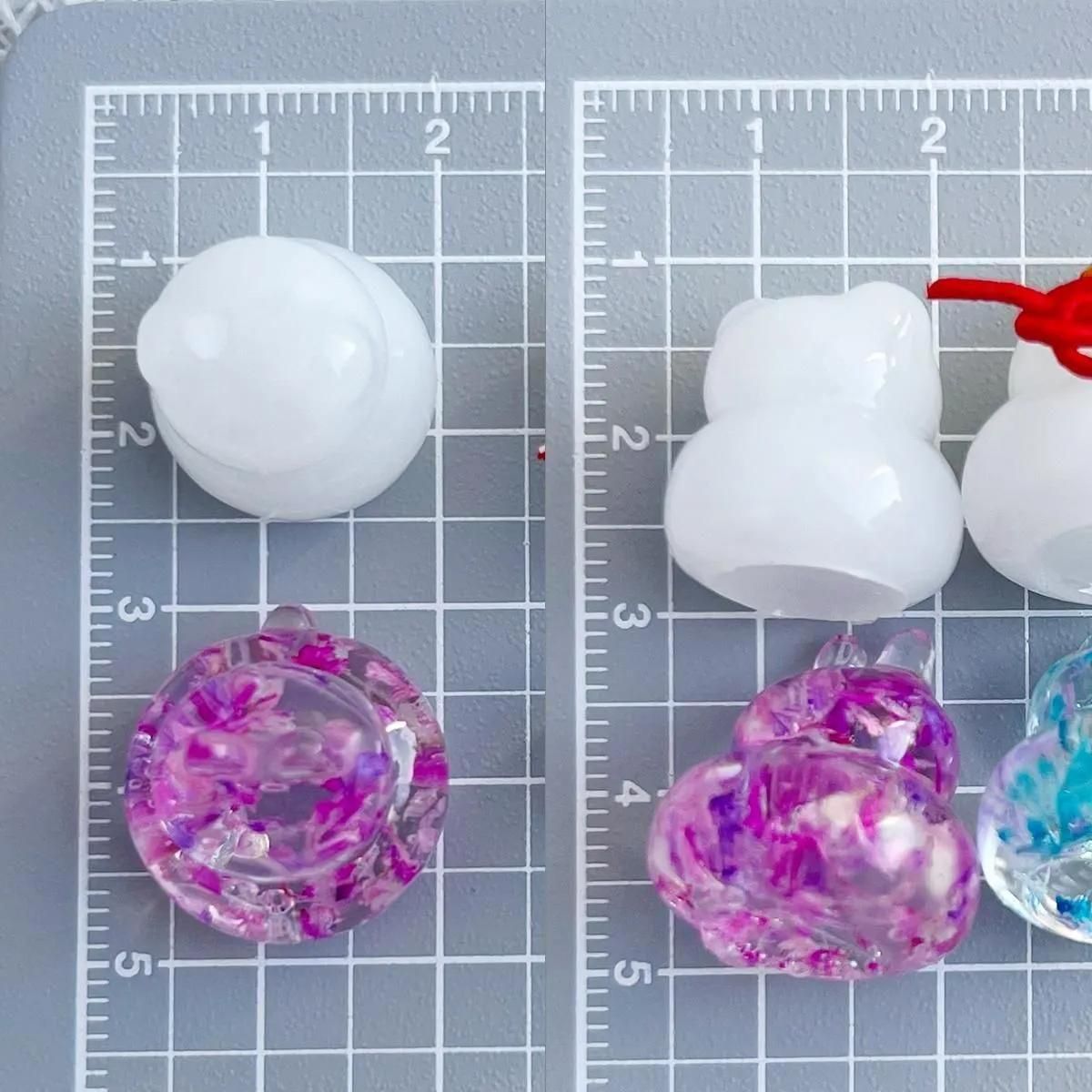 モールドから取り出したら、すごくかわいい「かがみもち」がでてきました。耳付きの方は、しっかりと耳までレジンを入れるのが不十分だったので、欠けてしまいましたが、それでもかわいいです。
