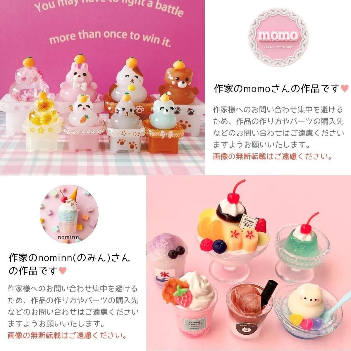 お正月はもちろんのこと、台座はお月見団子を乗せてみたり、鏡もちは2段アイスアレンジをしたり♪アニマルタイプは1段目の顔の部分だけにレジンを流すことで、立体アニマルフェイスのデコパーツにもなるよ^^