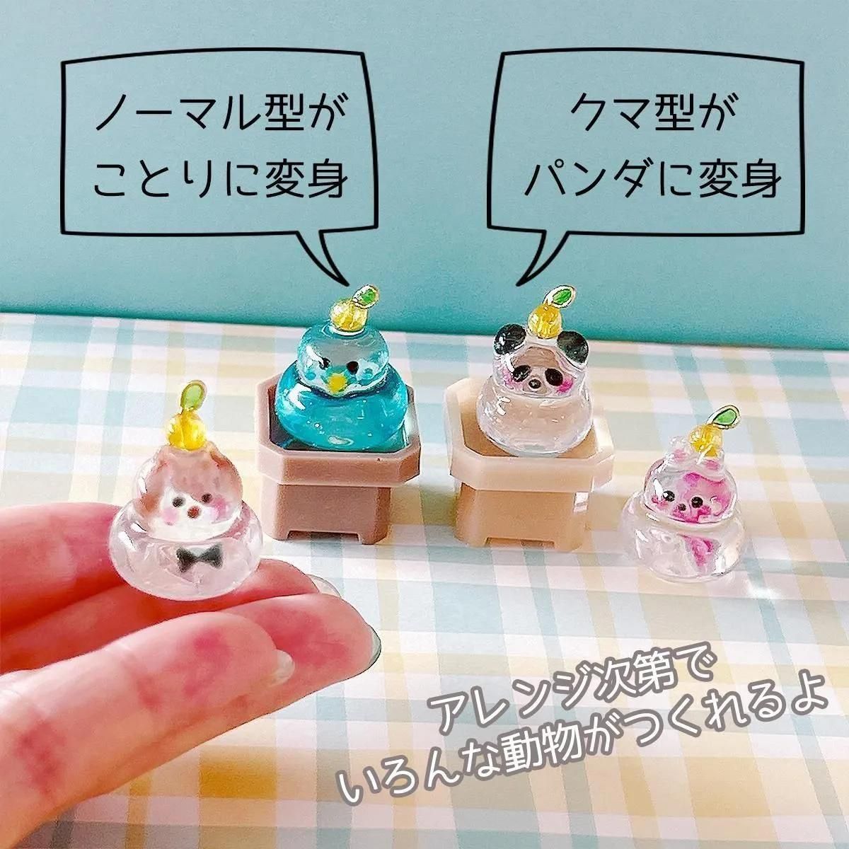 アニマル鏡餅が作れるのが気になり購入しました。UVレジンよりも2液性レジンの方が綺麗な仕上がりになると思います。