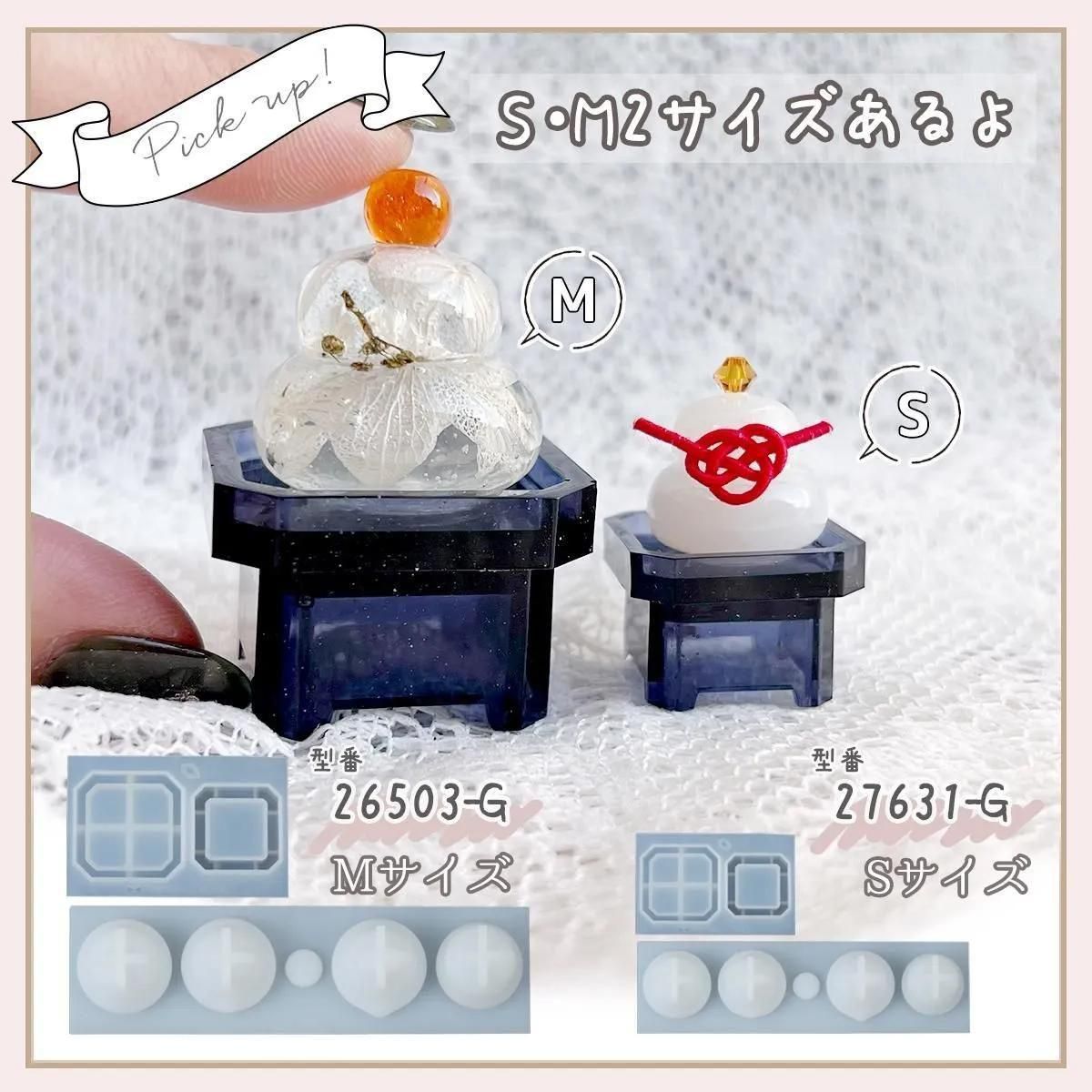【シリコン型・モールド】かがみもちSサイズ 三方付き シリコンモールド レジン型 セット 台座 アニマル スイーツ デコパーツ 立体 3d UVレジン LED GreenOceanオリジナル♪