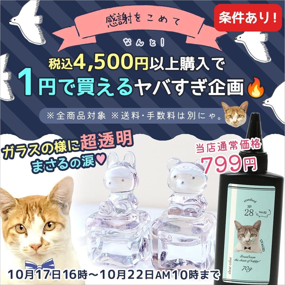 ◎■【条件あり!】商品計税込4500円以上でまさるの涙が1円で買えちゃう企画!超透明 UV-LEDレジン液 70g クリア GreenOceanオリジナル 猫 UVレジン液 LEDレジン液