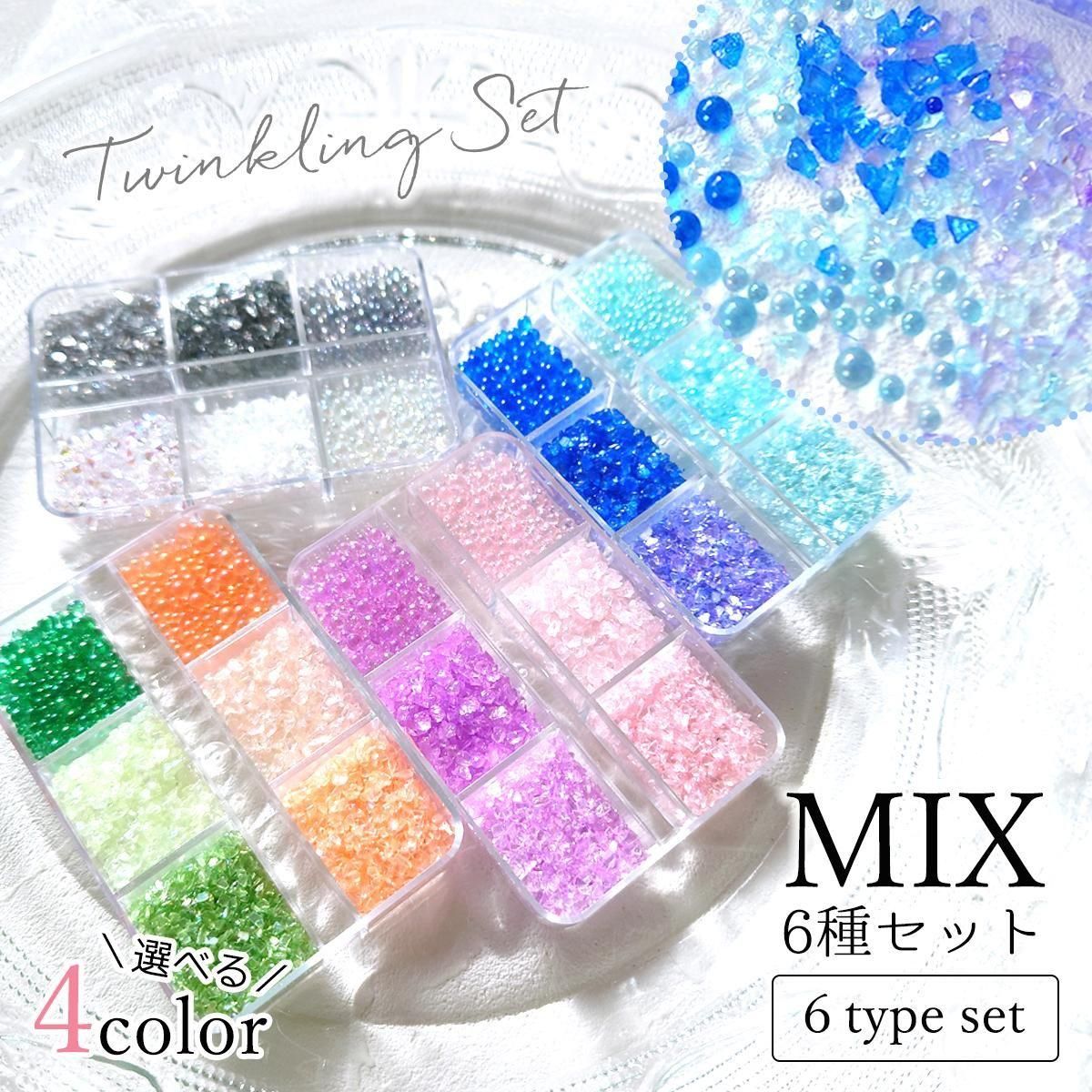 ◎【封入】つぶつぶミックス 6種セット オーロラクラッシュストーン ガラスブリオン カレット レジン封入素材 ネイルパーツ デコパーツ キラキラ UVレジン《選べる4色》