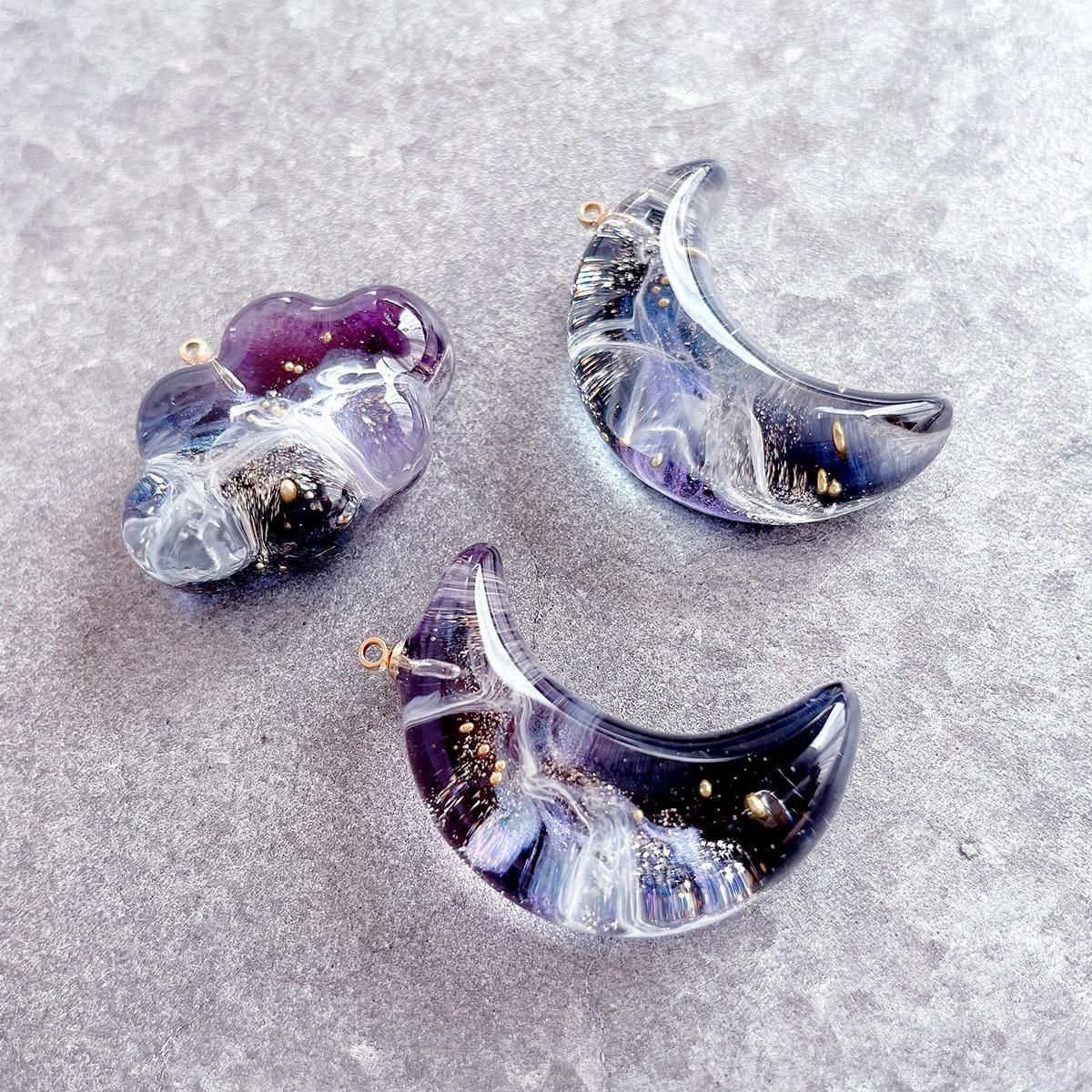 ○完成サイズ:Aタイプ月 (大)約30×25×5.5mm、(小)約16.7×20×4mm Bタイプハート (大)約29×21×5.7mm、(小)約11×15×3.5mm