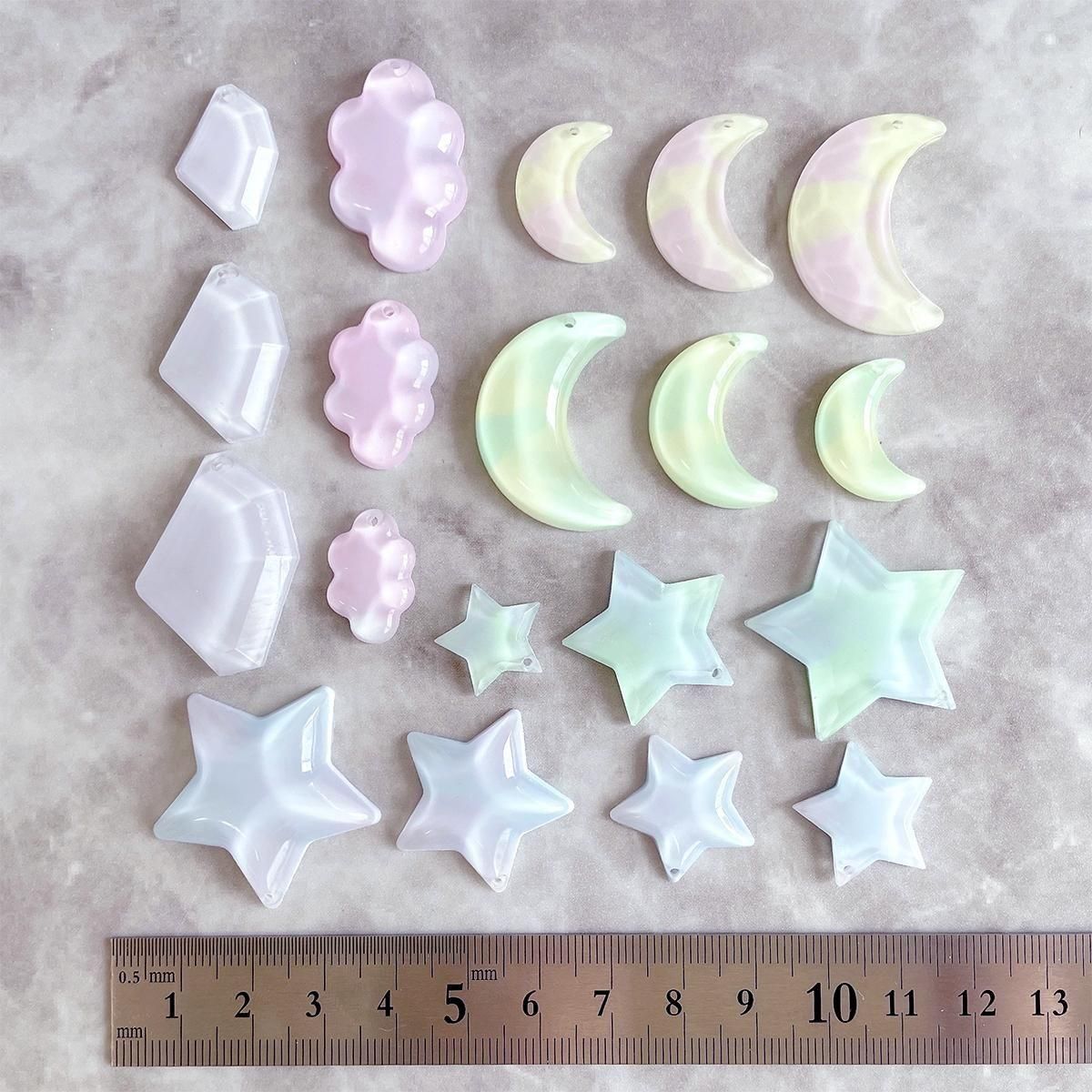 - ◎【シリコン型・モールド】ぷっくりモチーフ シリコンモールド レジン型 セット 雲 月 星 ムーン スター ハート アクセサリー キーホルダー デコパーツ UVレジン クラフト《選べる2種》