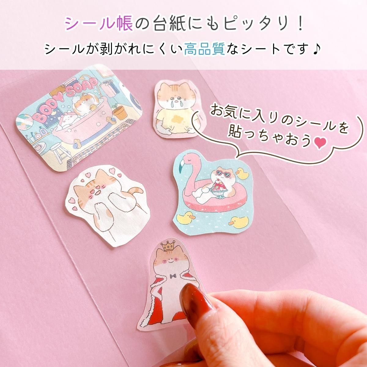 サイズや透明感、しっかりした質感を活かして、シール帳の台紙にする使い方もオススメ!!