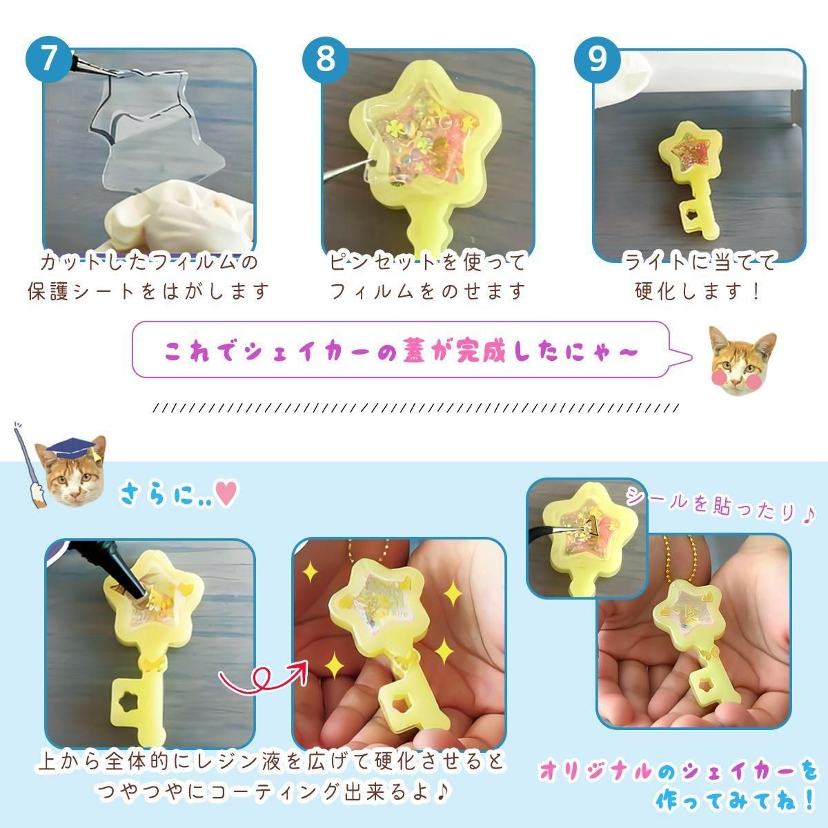薄いのにしっかりとした上質な透明フィルムで、保護シートが付いているから使う直前まできれい!カット線を油性ペンで保護フィルムに書き込めば、カットした後は剥がすだけ♪サイズは写真のL判とほぼ同じで大きめだから、1枚で何個もの蓋が作れちゃうよ!オリジナルのシェイカーを作って楽しんでね^^