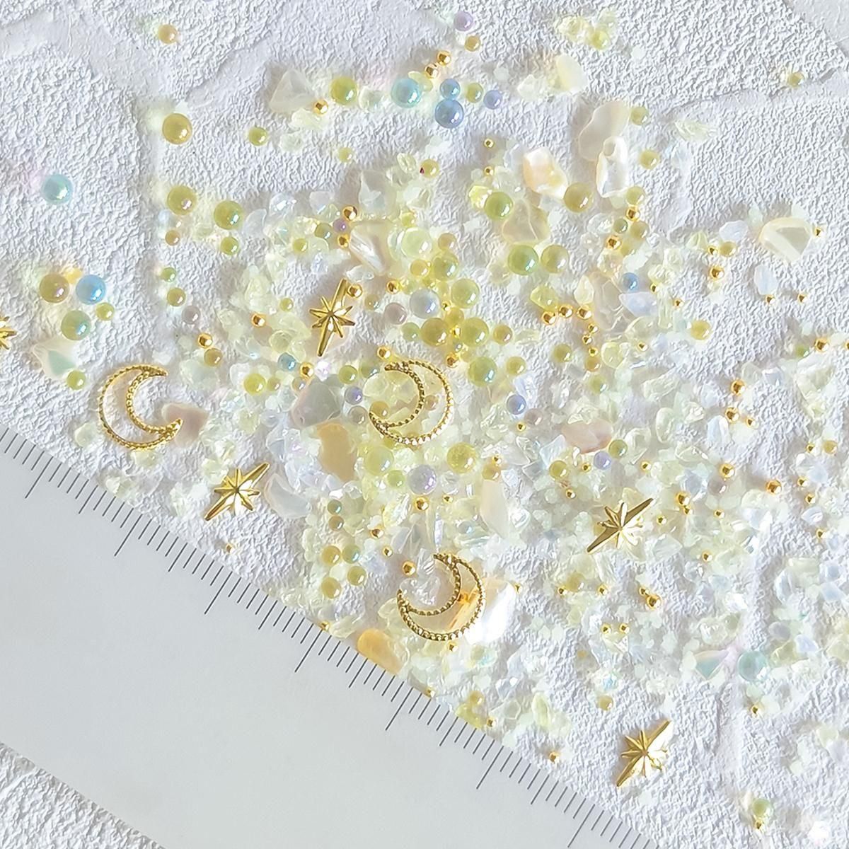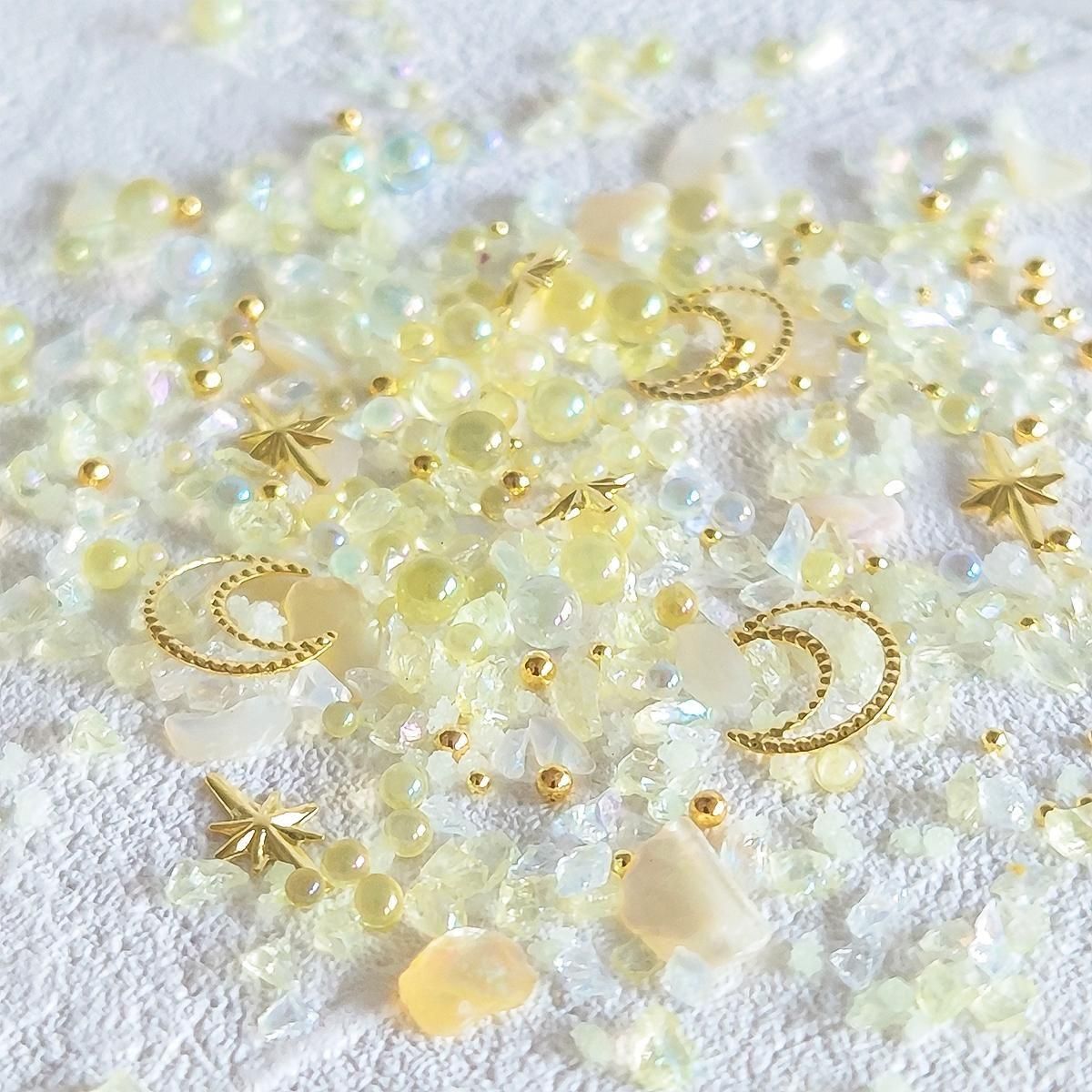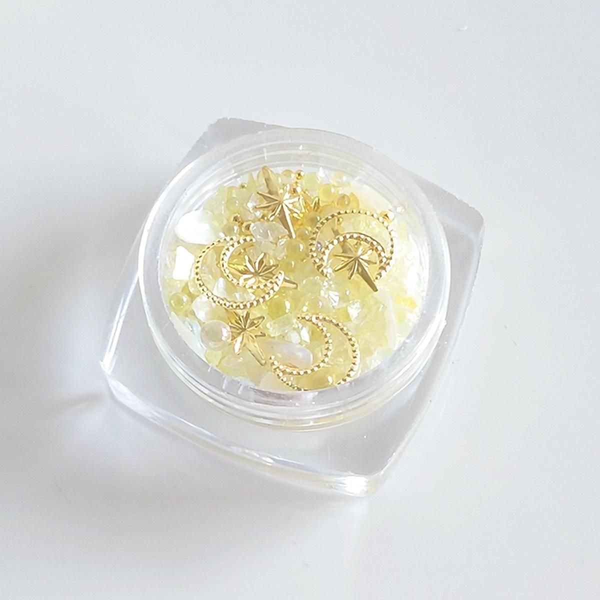 4. ◎【封入】レジン封入素材 封入パーツ シェイカー デコパーツ クレセントムーン 蓄光 三日月 夜 秋 月光 GreenOceanオリジナルブレンド♪《No196》ミックス イエロー