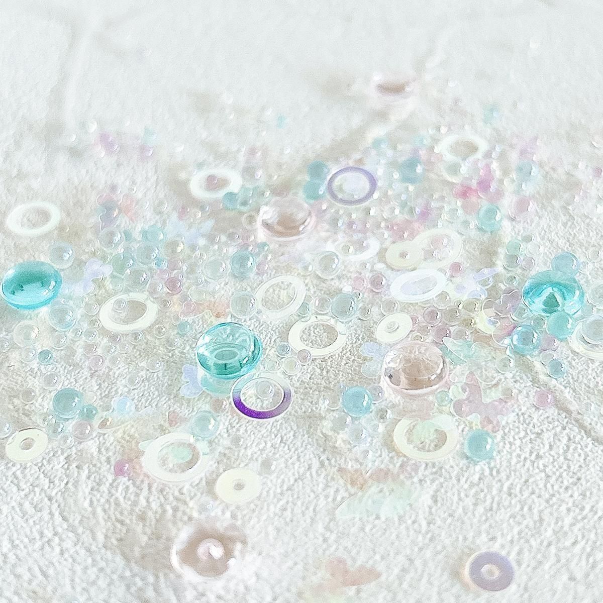 - ◎【封入】レジン封入素材 封入パーツ シェイカー デコパーツ しゃぼんだま 蝶 シャボン玉 夏 アクア ブリオン GreenOceanオリジナルブレンド♪《No195》ミックス ブルー