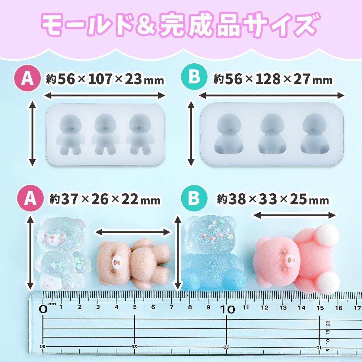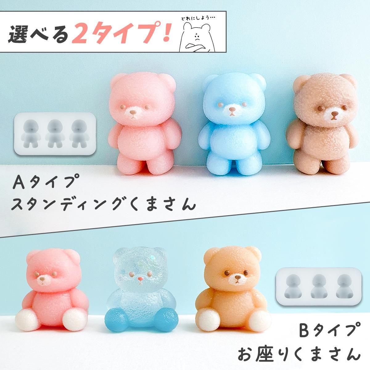 - ◎【シリコン型・モールド】3Dくまさん シリコンモールド レジン型 テディベア ぬいぐるみ クマ 熊 キーホルダー立体 スクイーズ UVレジン LEDレジン 手芸 クラフト 《選べる2種》