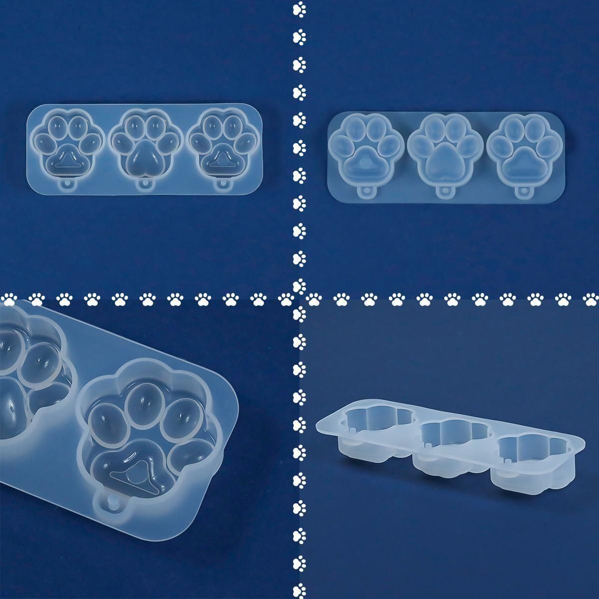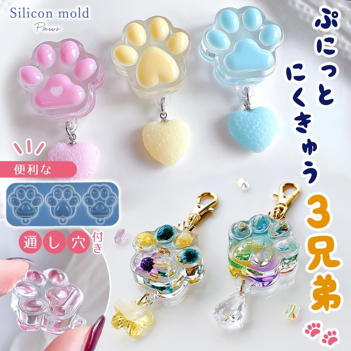 4. ◎【シリコン型・モールド】にくきゅう3兄弟 シリコンモールド レジン型 セット 肉球 大きめ 犬 猫 動物 キーホルダー チャーム 通し穴付き カン付き UVレジン LED 手芸 クラフト