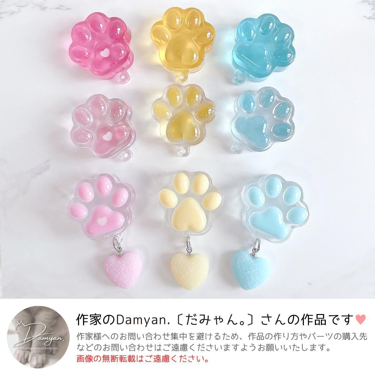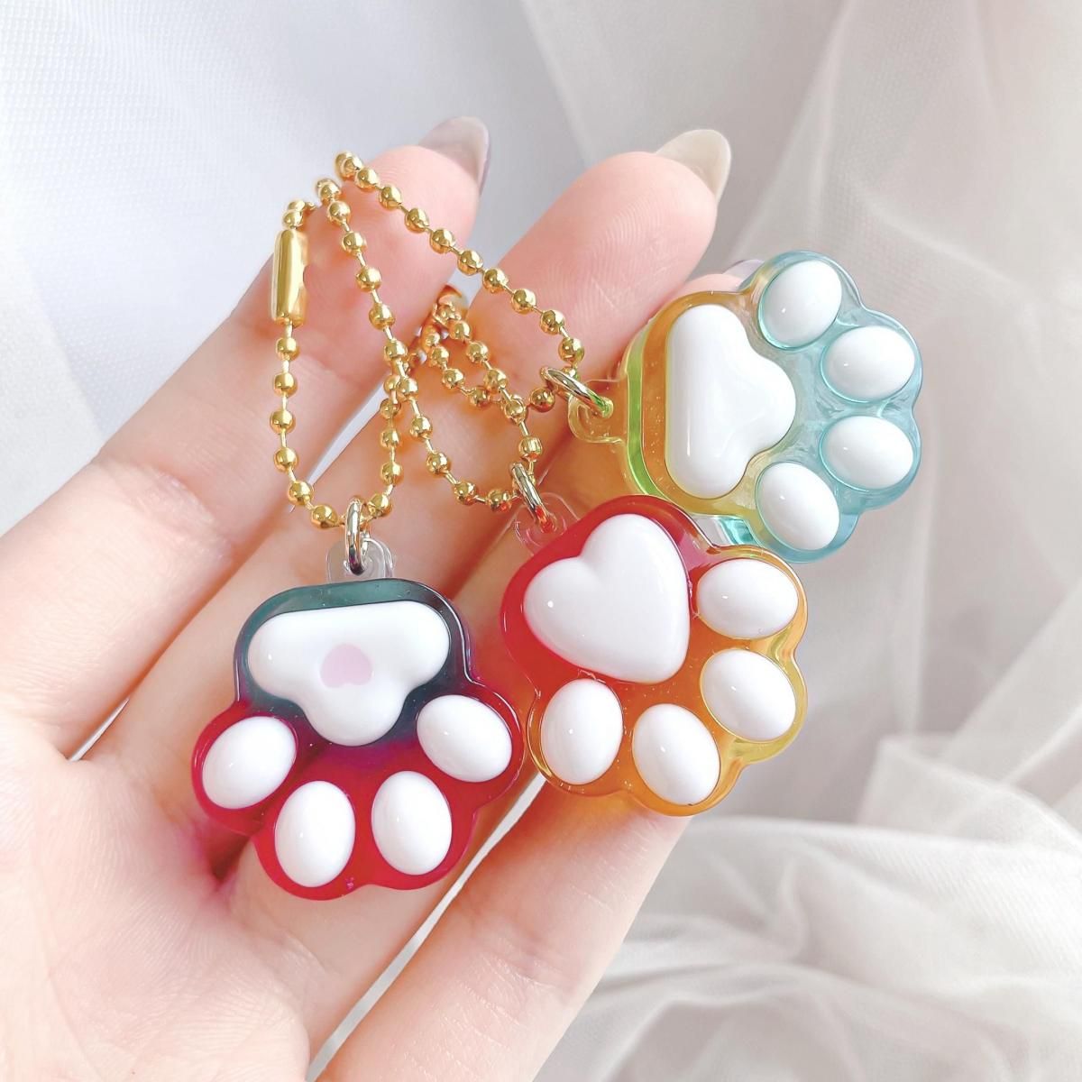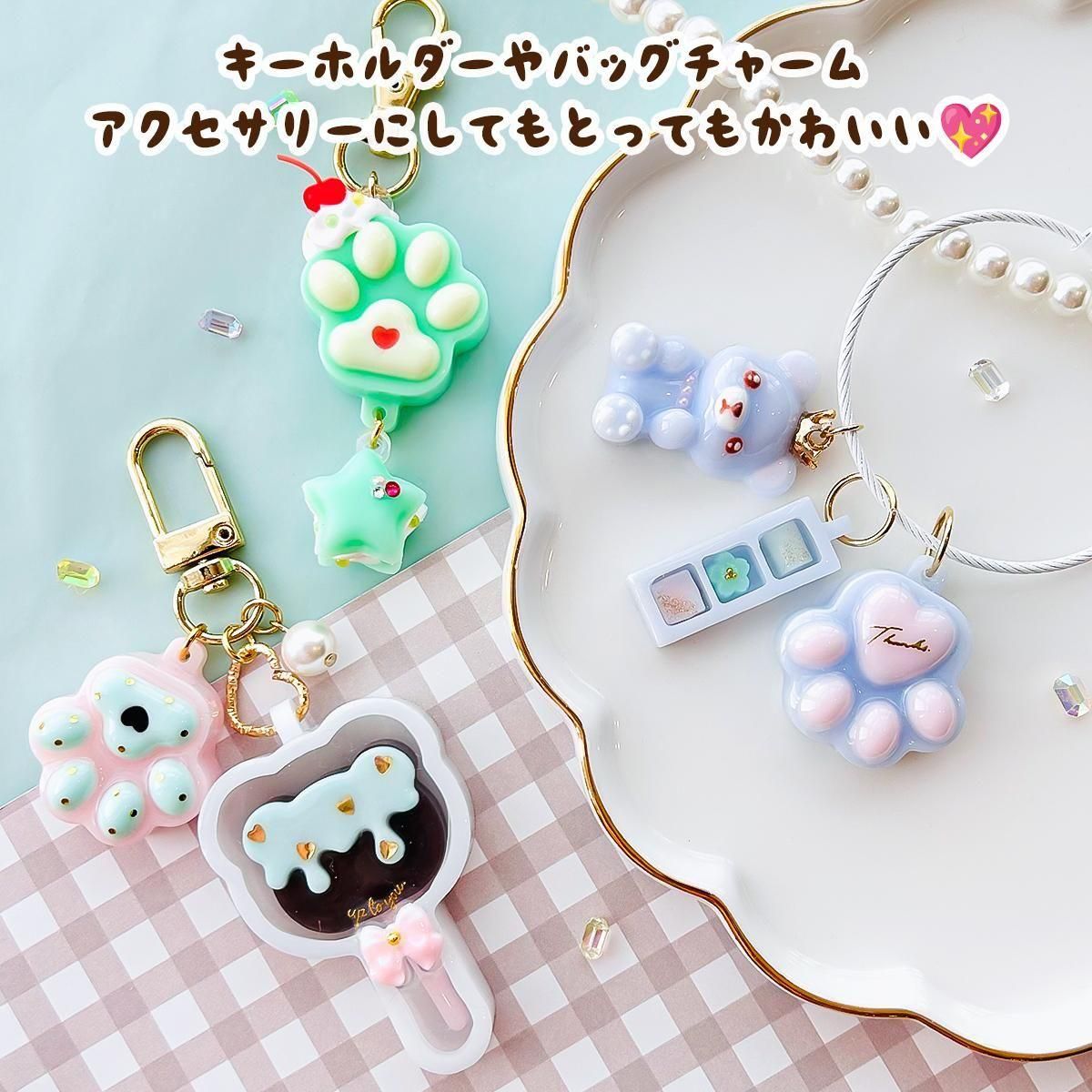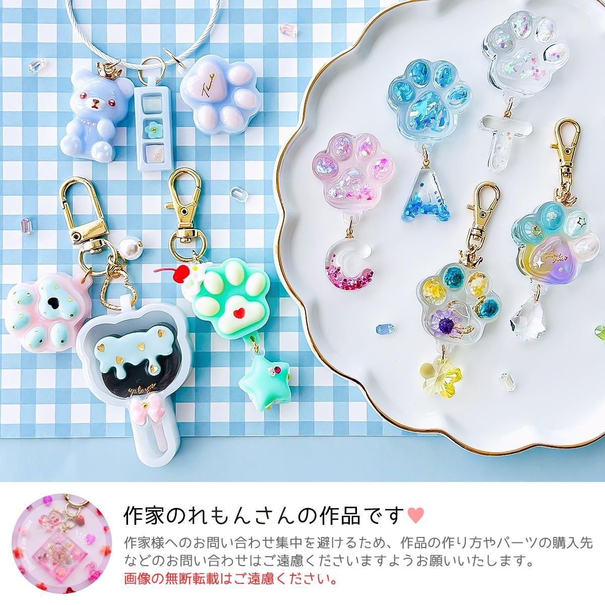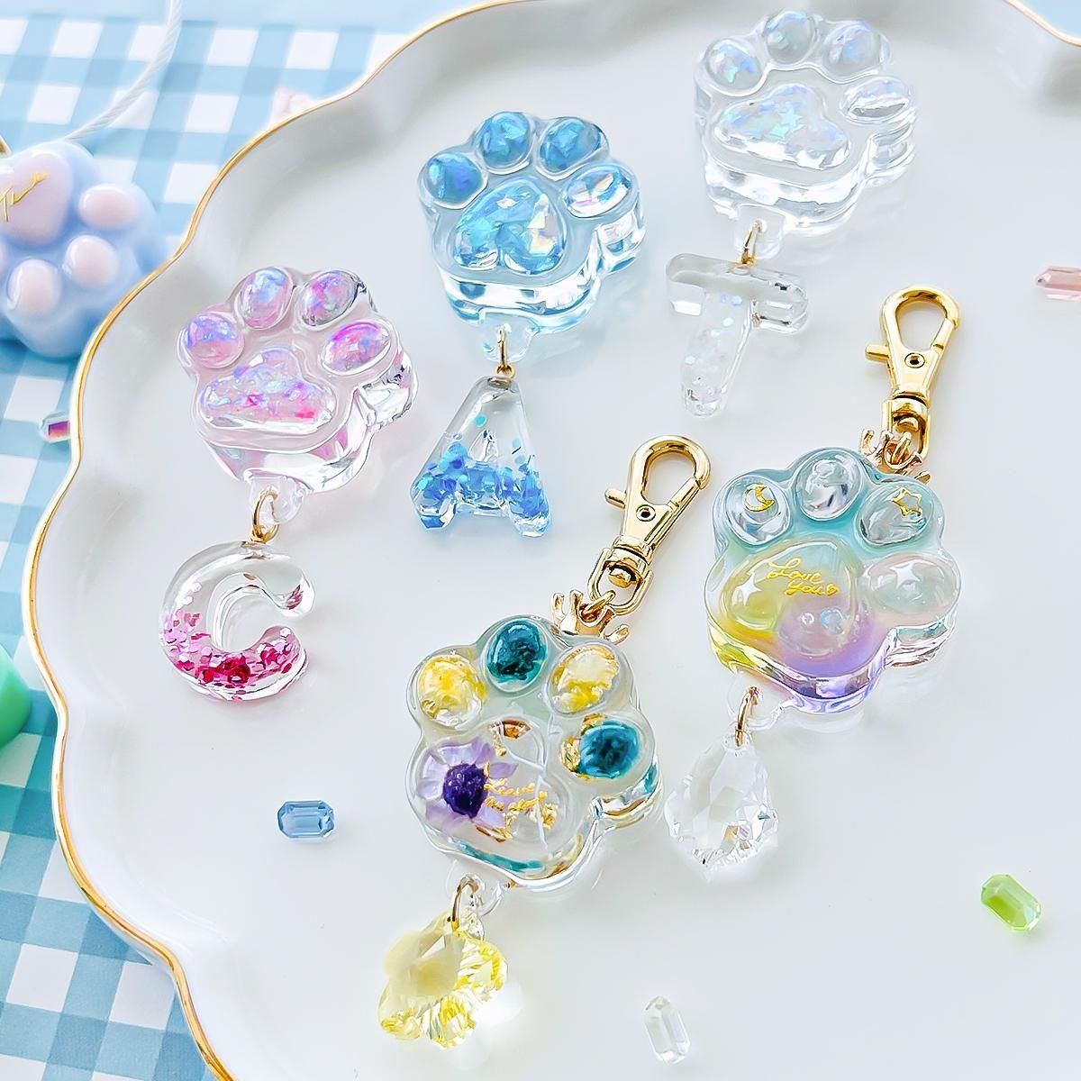 ぷっくりフォルムが可愛い♪少しずつ異なる肉球モチーフが一度に3種類つくれちゃうシリコンモールド。キーホルダーやバッグチャーム、アクセサリーにしてもおすすめです!レジン液を流すだけでカンも作れるから、金具やボールチェーンを通すだけで作品が作れるよ!推しカラーで自分だけのオリジナル推し活グッズにしたり、アルファベットと組み合わせてうちの子グッズにしたり。お子さまと作るのもおすすめ^^