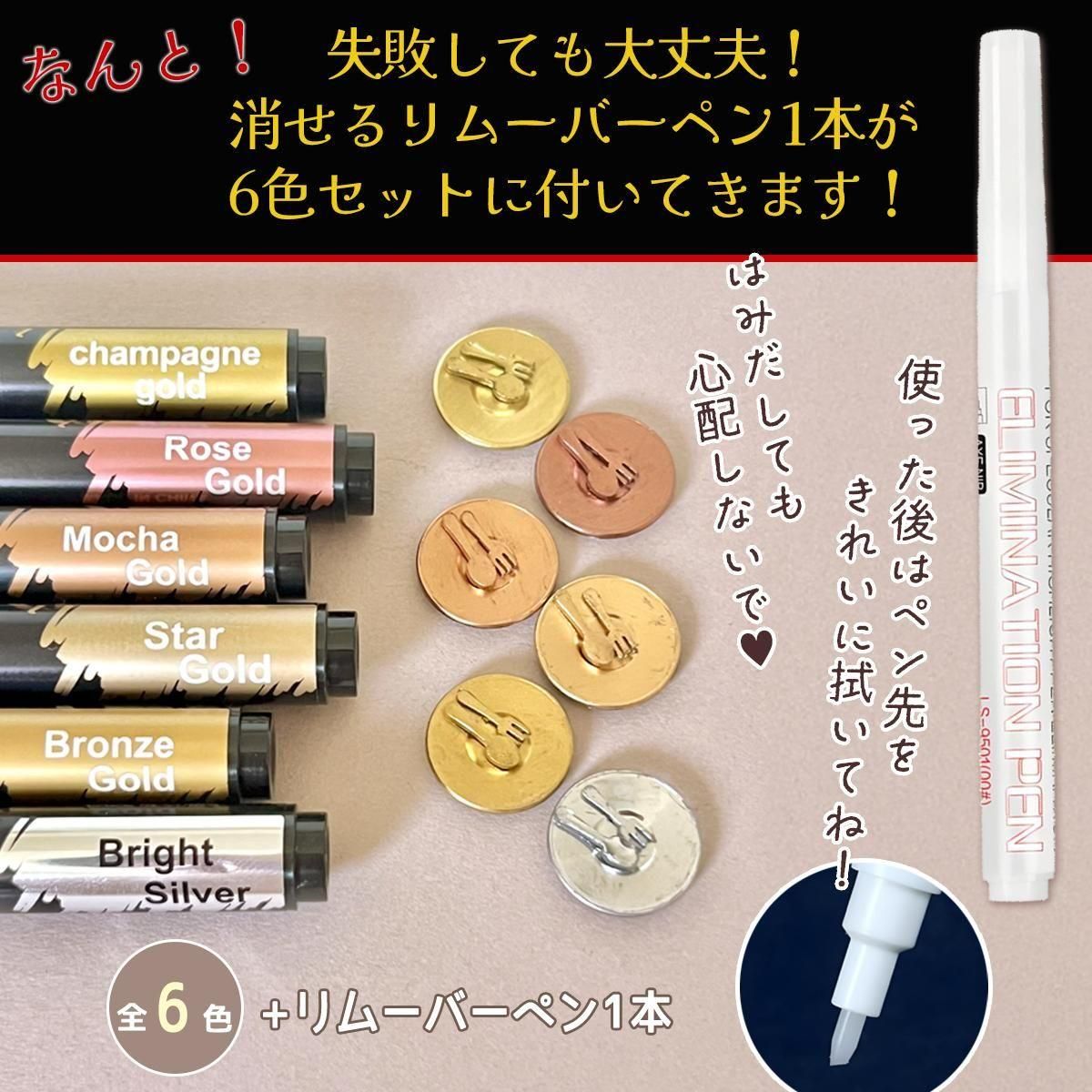 【レジンペン】7本セット 0.7mm クロームマーカー 全6色+リムーバーペン付 中細 金 銀 メタリックペン クロームペン ミラー メッキ 光沢 鏡面 ゴールド ブロンズ シルバー 塗装 クラフト