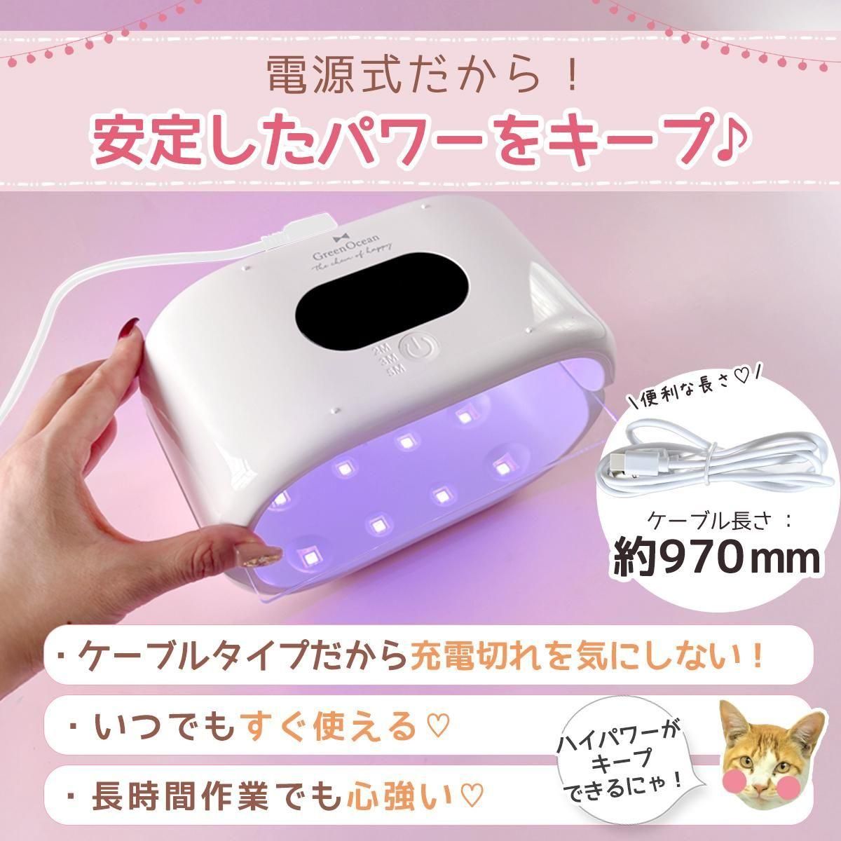今までタイマー無しを使っていましたが、ちゃんと硬化するまで何回もスイッチ押したりしてましたが、それが面倒でした。。。が、こちらの商品はタイマーがついてるー!!!しかも5分までのがついてるので、しっかり硬化するし便利ー!!!