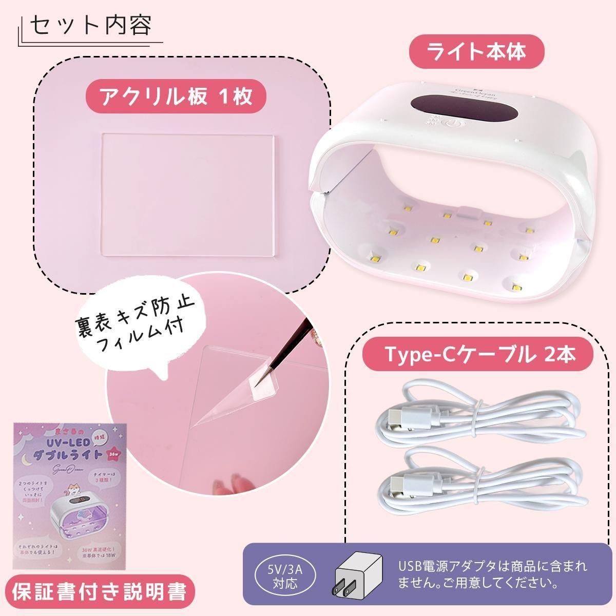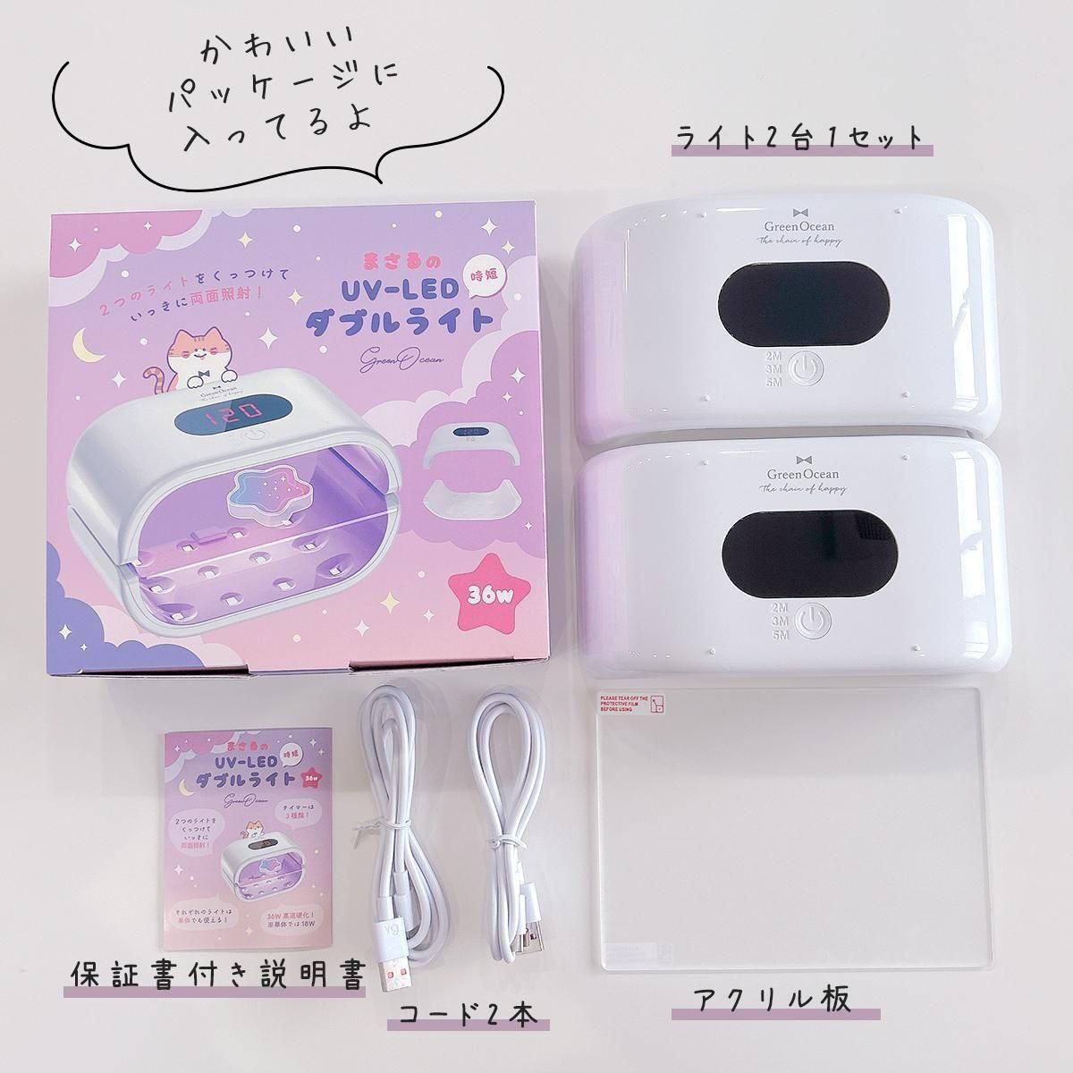 ○セット内容:2台1セットUV&LEDライト本体、USBケーブル2本《USBケーブル Type-C》、保証書付き説明書、アクリル板