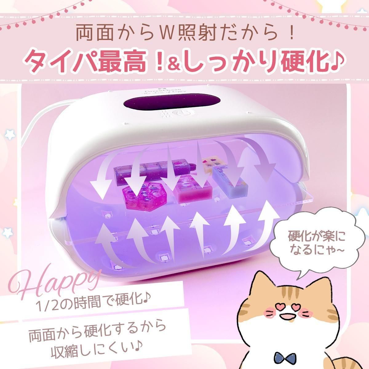上下同時照射でスピード硬化!しっかり時短!強力マグネットでパチッとくっつく両面ダブルライト♪