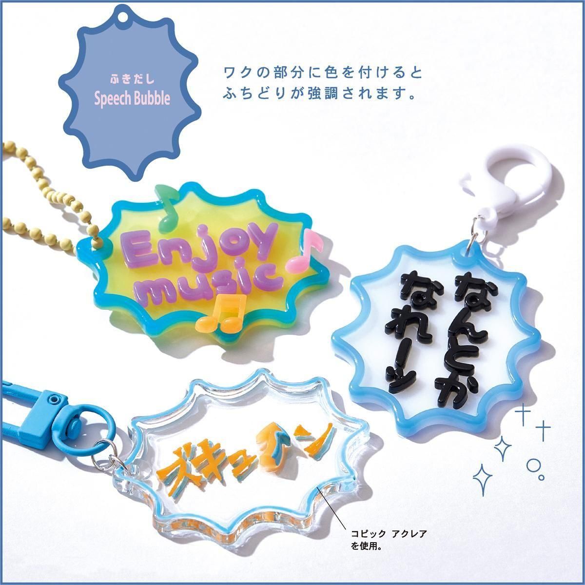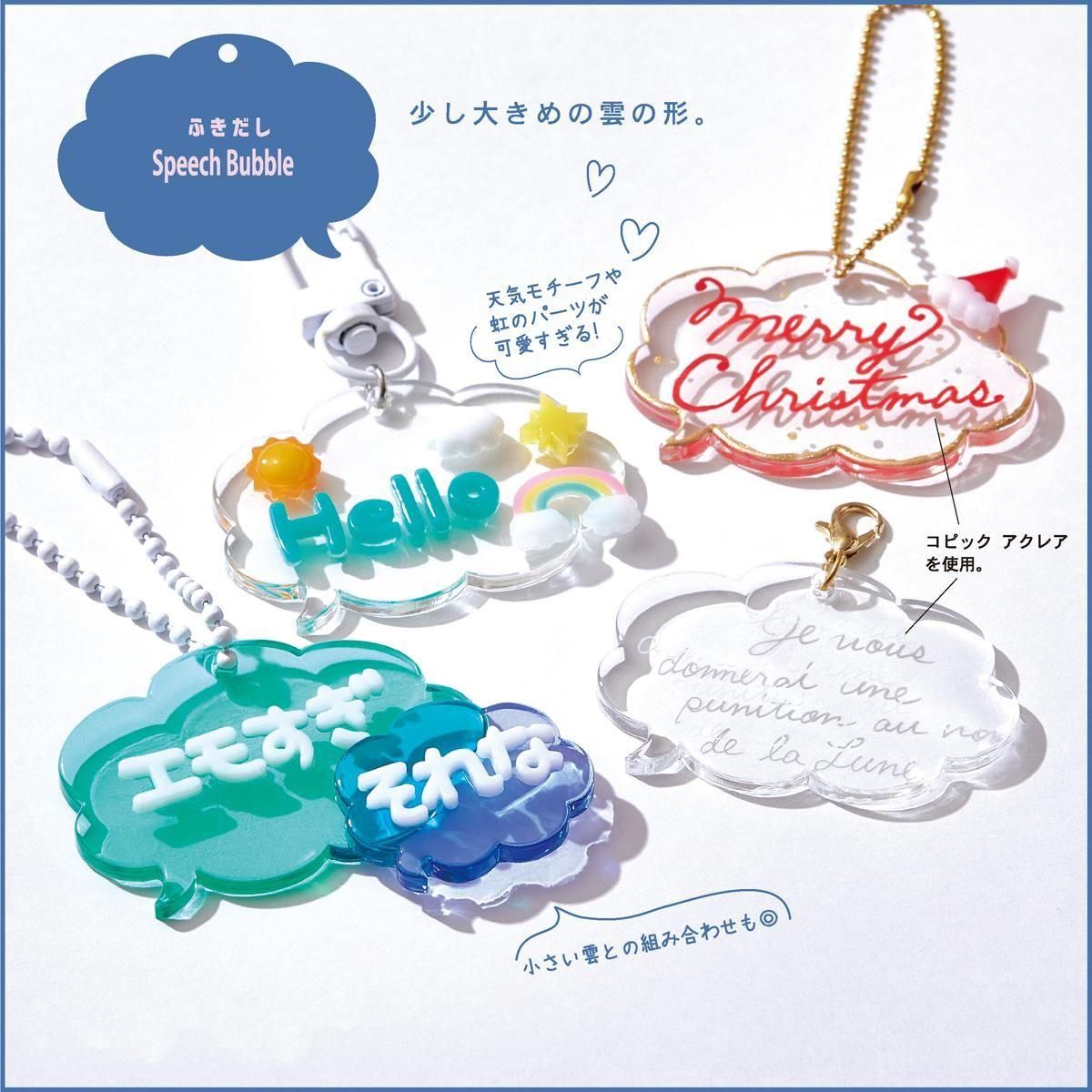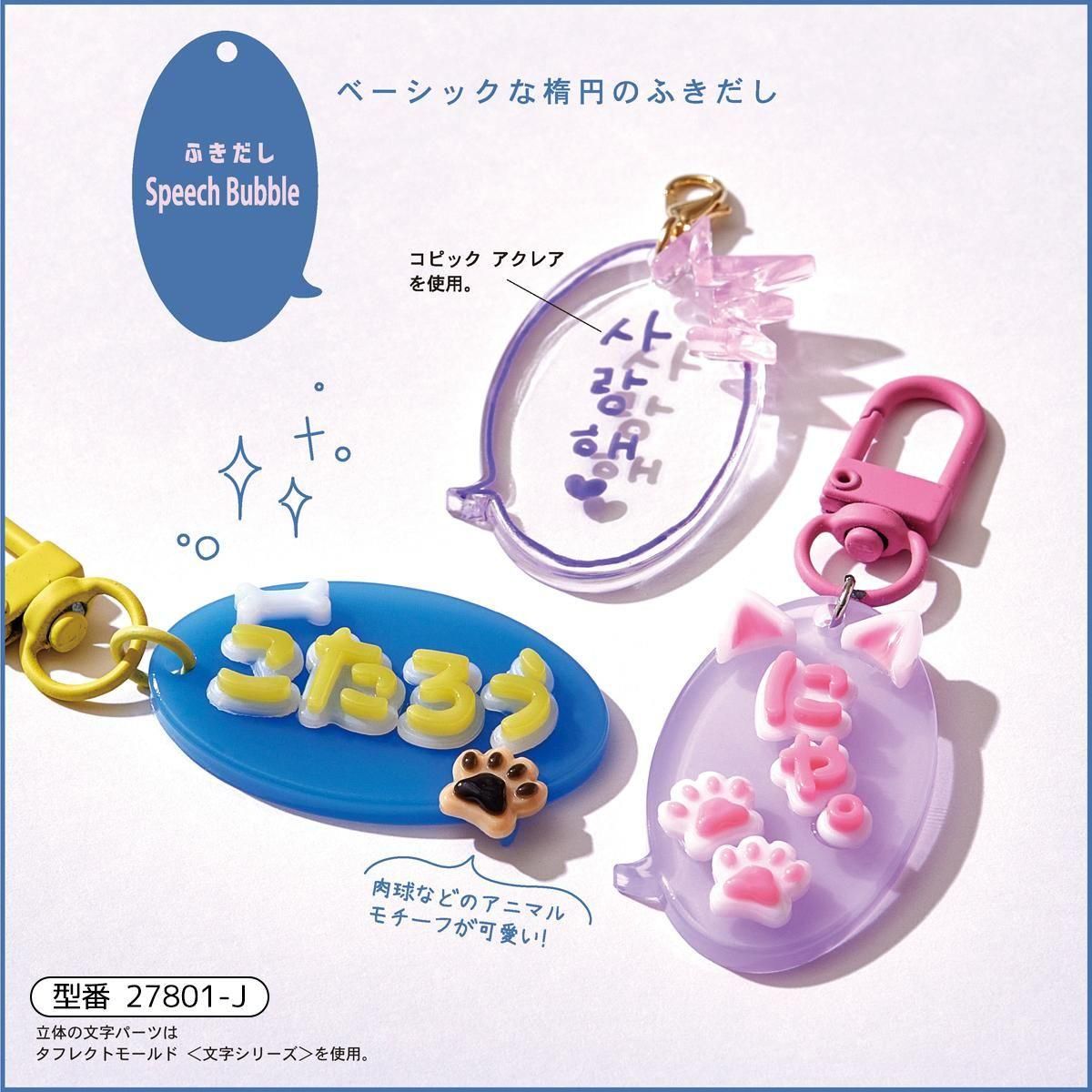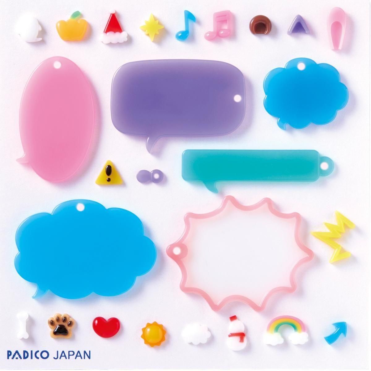 言葉をのせられるふきだしの形の6種類のプレートと天気や感情、クリスマスなどの20種類のパーツが作れちゃうモールドだよ^^