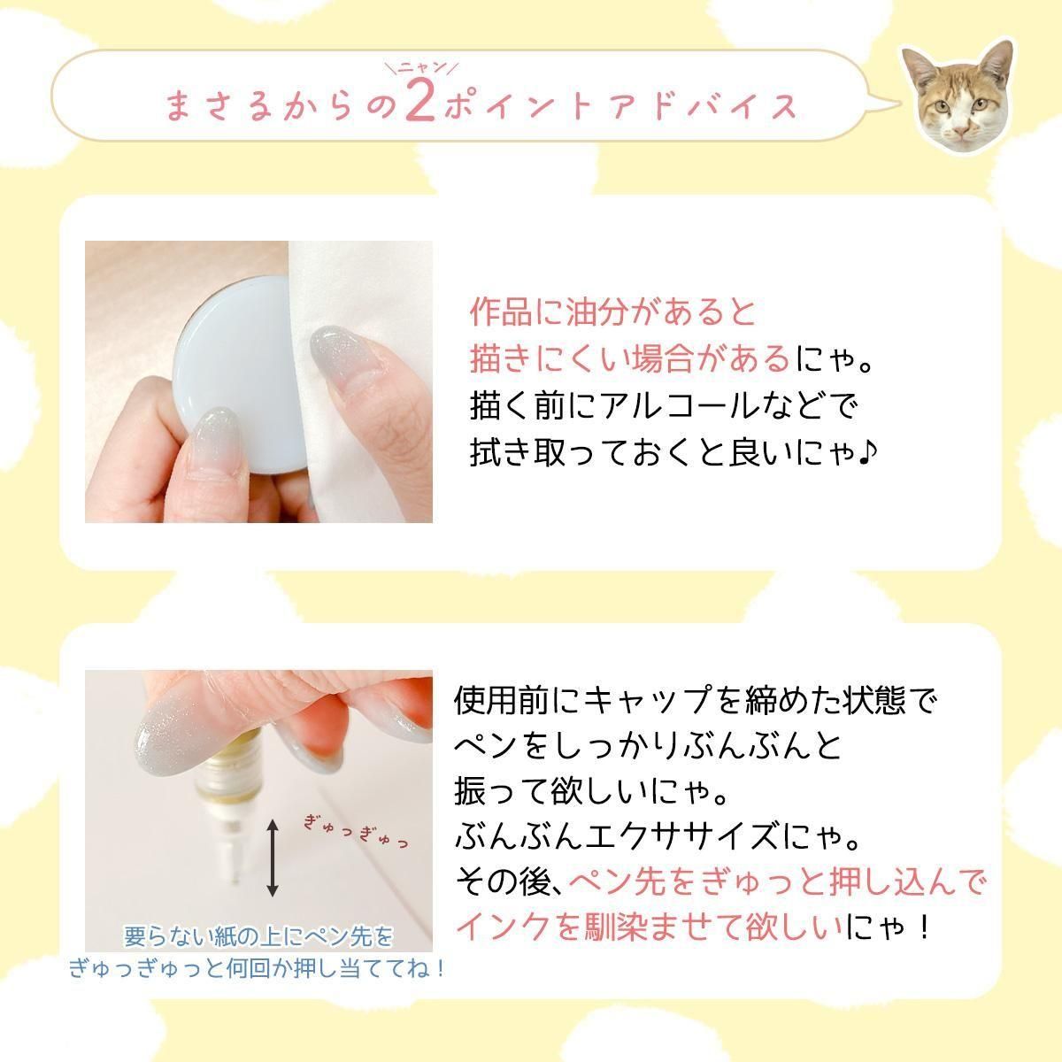 0.7mmの中細のペン先で、模様や顔を描き込んだり、メッセージやお名前などの文字を入れたり、表面を塗りつぶしたりできちゃう♪