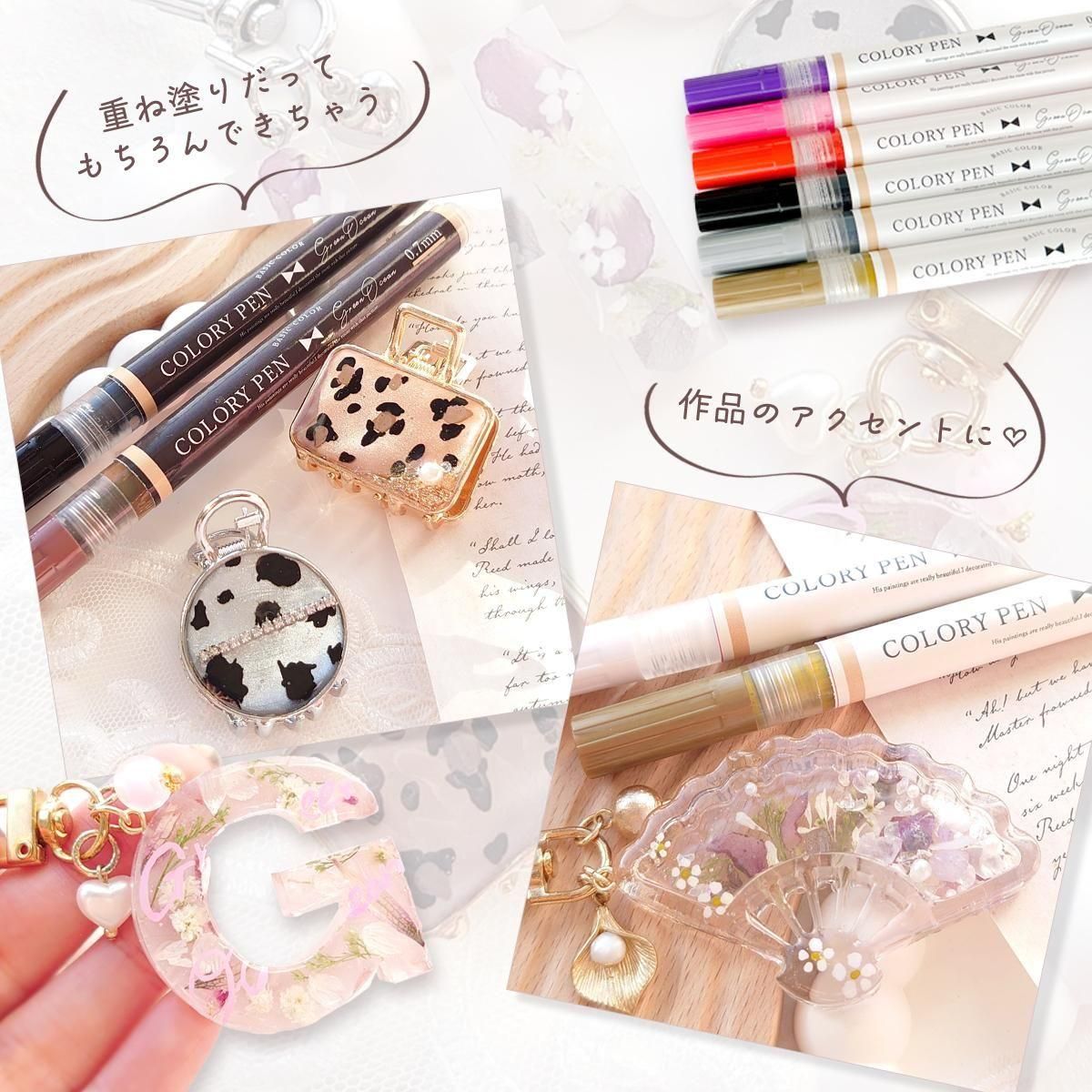 大人気のGreenOceanオリジナル着色剤「カラリー」シリーズに、レジン作品に直接絵が描けちゃうペンタイプ「カラリーペン」が仲間入り!!ゴールド・シルバー・ホワイト・ブラックを含んだ使いやすいベーシックカラー12色から選べるよ^^