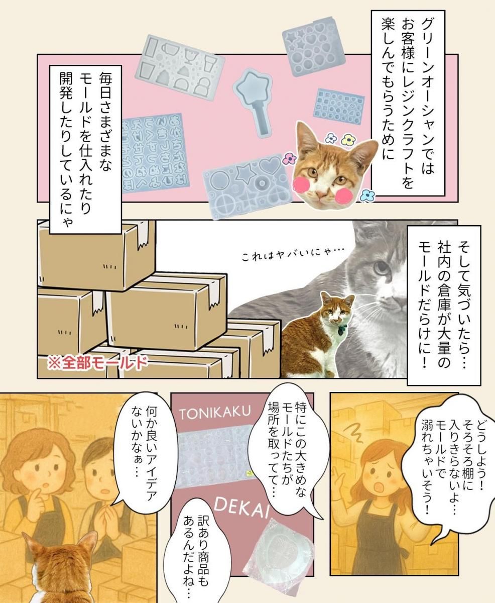 「大きくて個性的な行き場のないモールドたち・・・ずっとここで活躍の場を待っているにゃ。この子達の新しい家族をみつけてあげたいにゃ・・・」