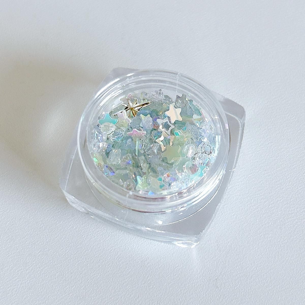 - ◎【封入】レジン封入素材 封入パーツ シェイカー デコパーツ メテオシャワー 蓄光 星 夜 偏光 白 透明 流星 GreenOceanオリジナルブレンド♪《No200》ミックス クリア