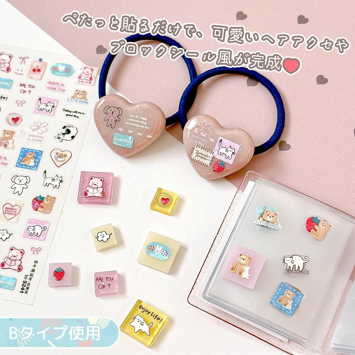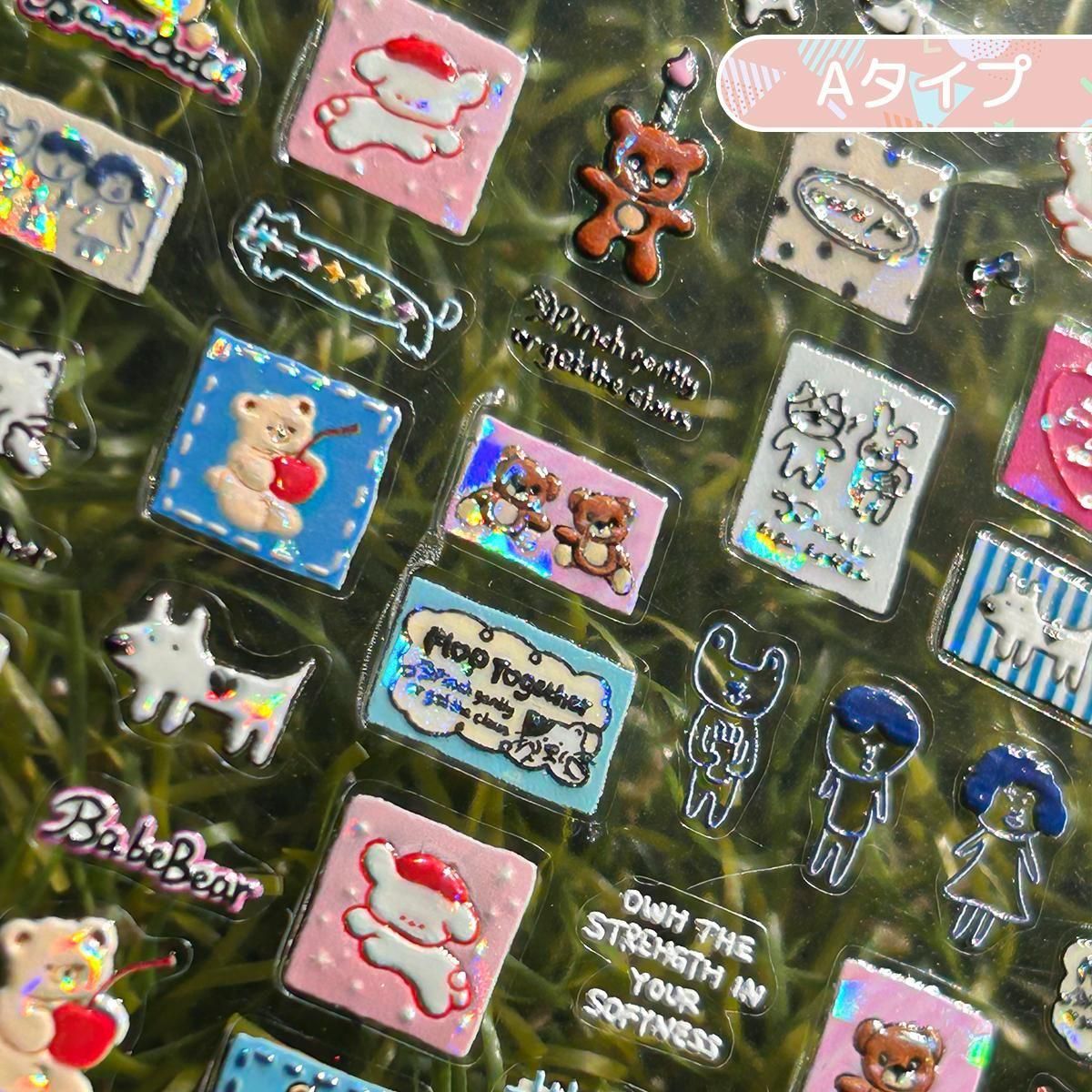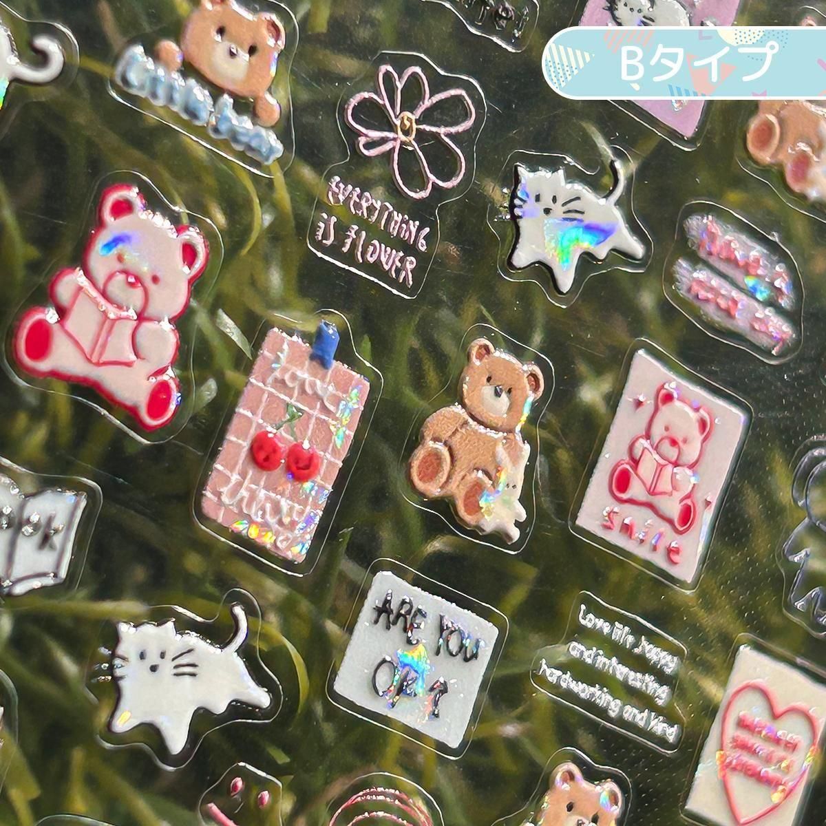 - 【シール】プレミアムレジンシール 平成レトロなタグ 透明 クリア 立体 ホログラム アニマル 猫 ネコ クマ 犬 うさぎ 平成女児風 貼り付けパーツ UVレジン クラフト ネイル 《選べる2種》